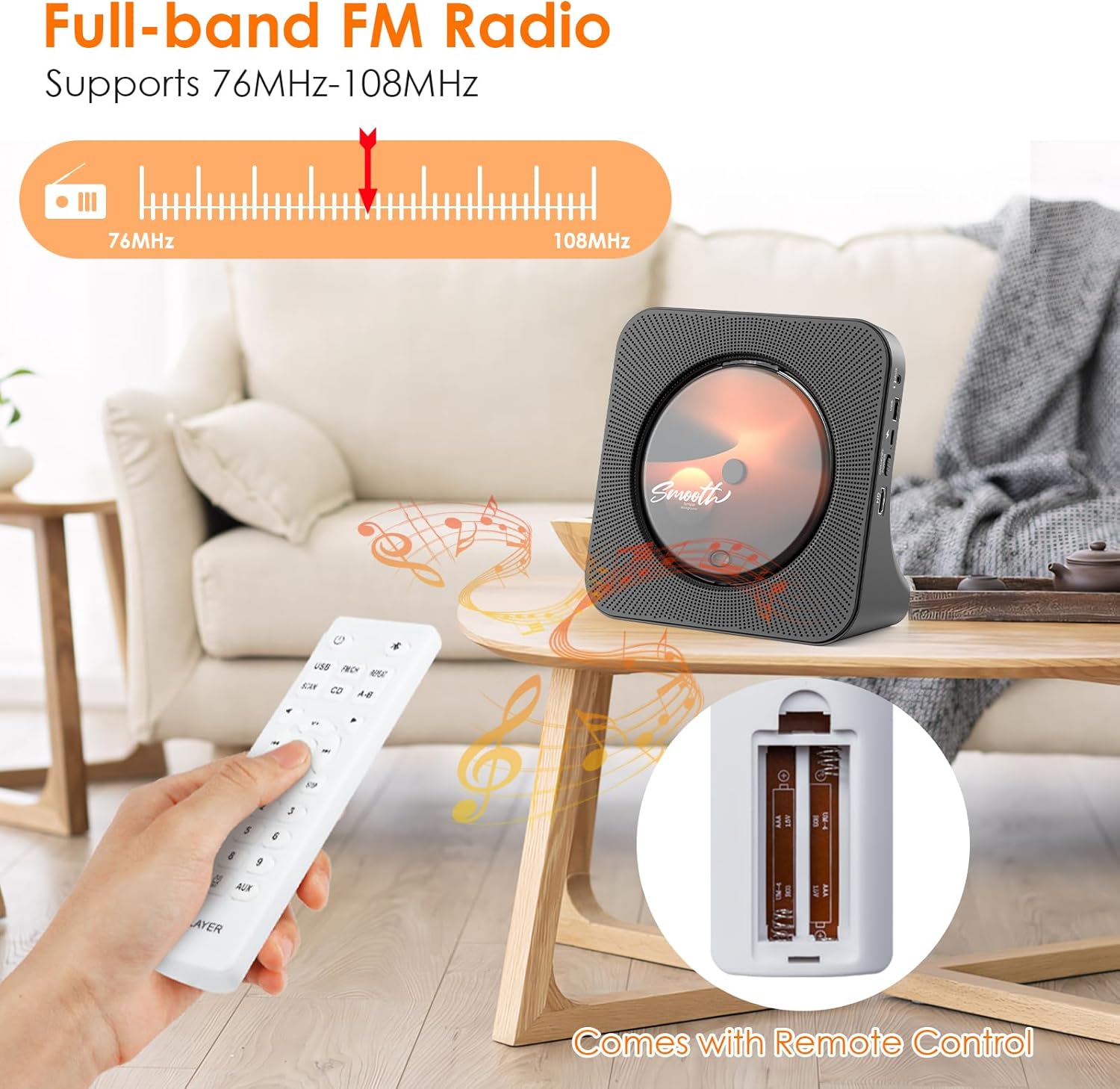 • CD плейър с Bluetooth 5.0 и радио: Най-новата технология Bluetooth 5.0 осигурява по-голям обхват на сигнала, по-бърза връзка и скорост на предаване. Този CD плейър е с вграден Bluetooth с обхват на свързване от 10 метра, което позволява свързването на мобилен телефон, таблет, слушалки или други Bluetooth устройства. Или, ако искате да се отпуснете и да слушате новините по радиото, просто превключете в FM режим с 76MHz-108.0MHz.