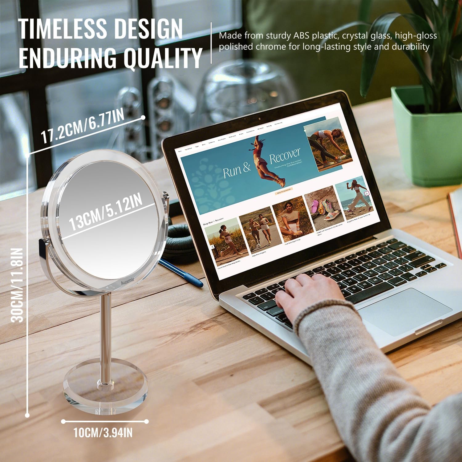 Козметично огледало Auxmir 30X/1X, огледало за грим, двустранно подвижно увеличително огледало, настолно огледало с 360° въртене, огледало с увеличение, огледало за бръснене за баня, спалня, пътуване