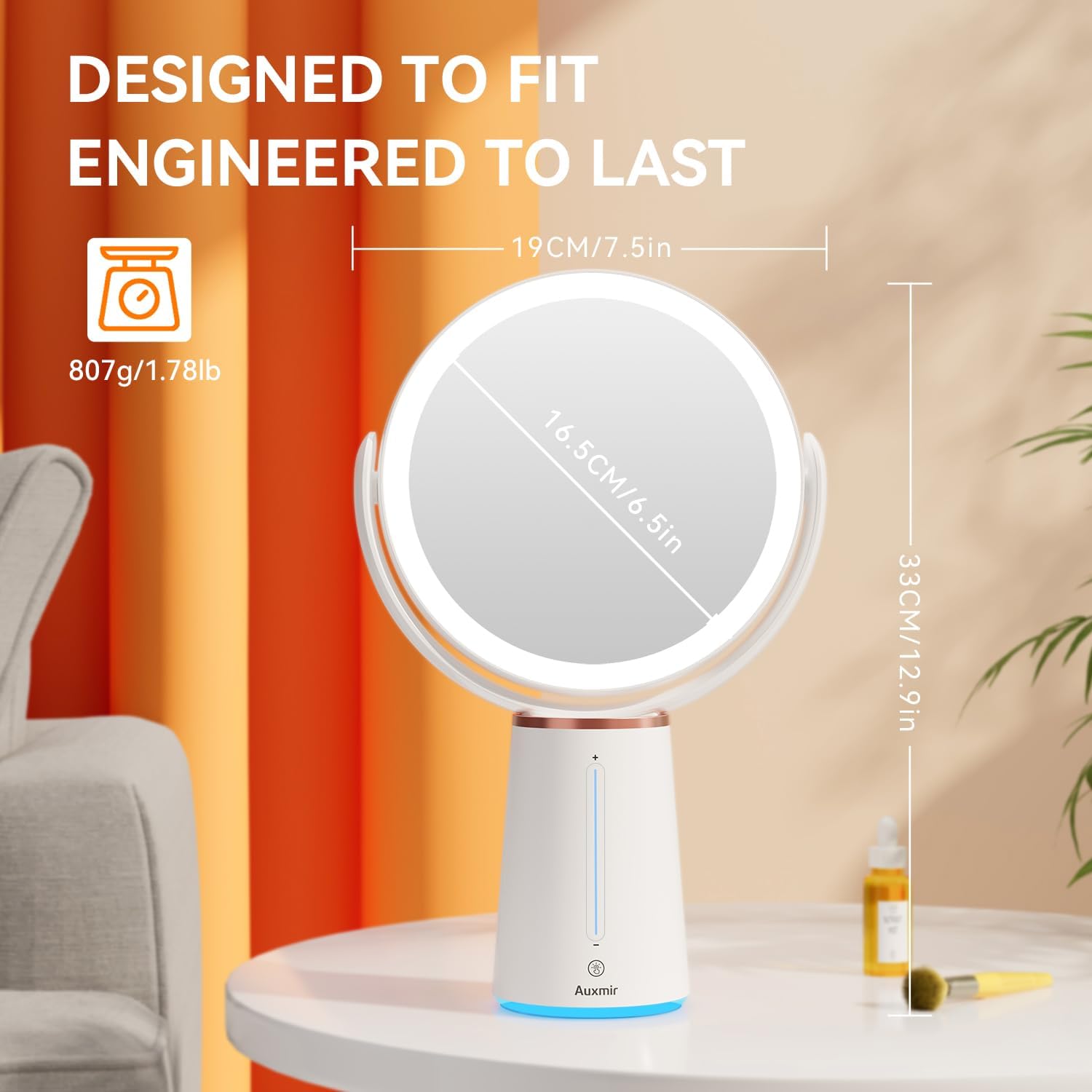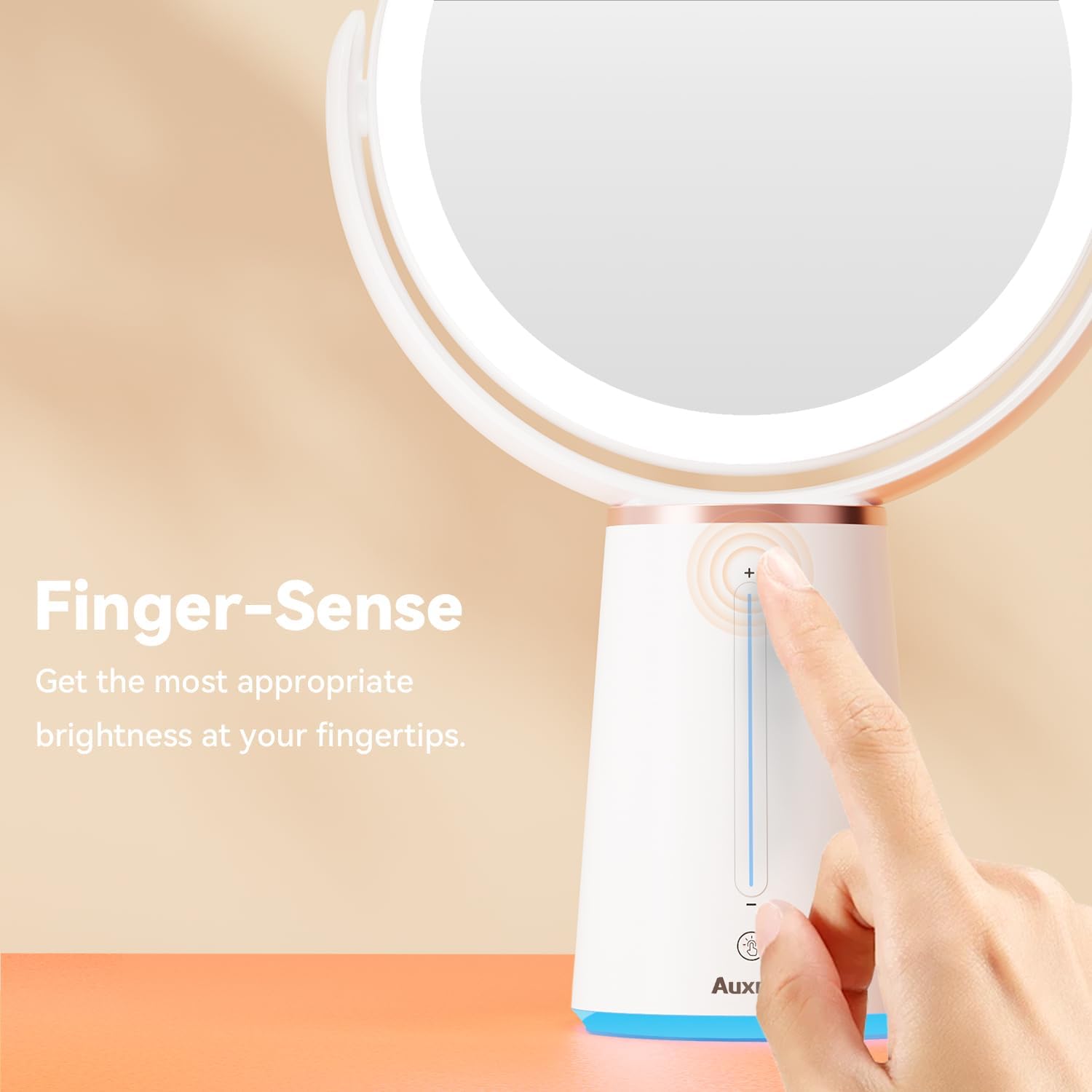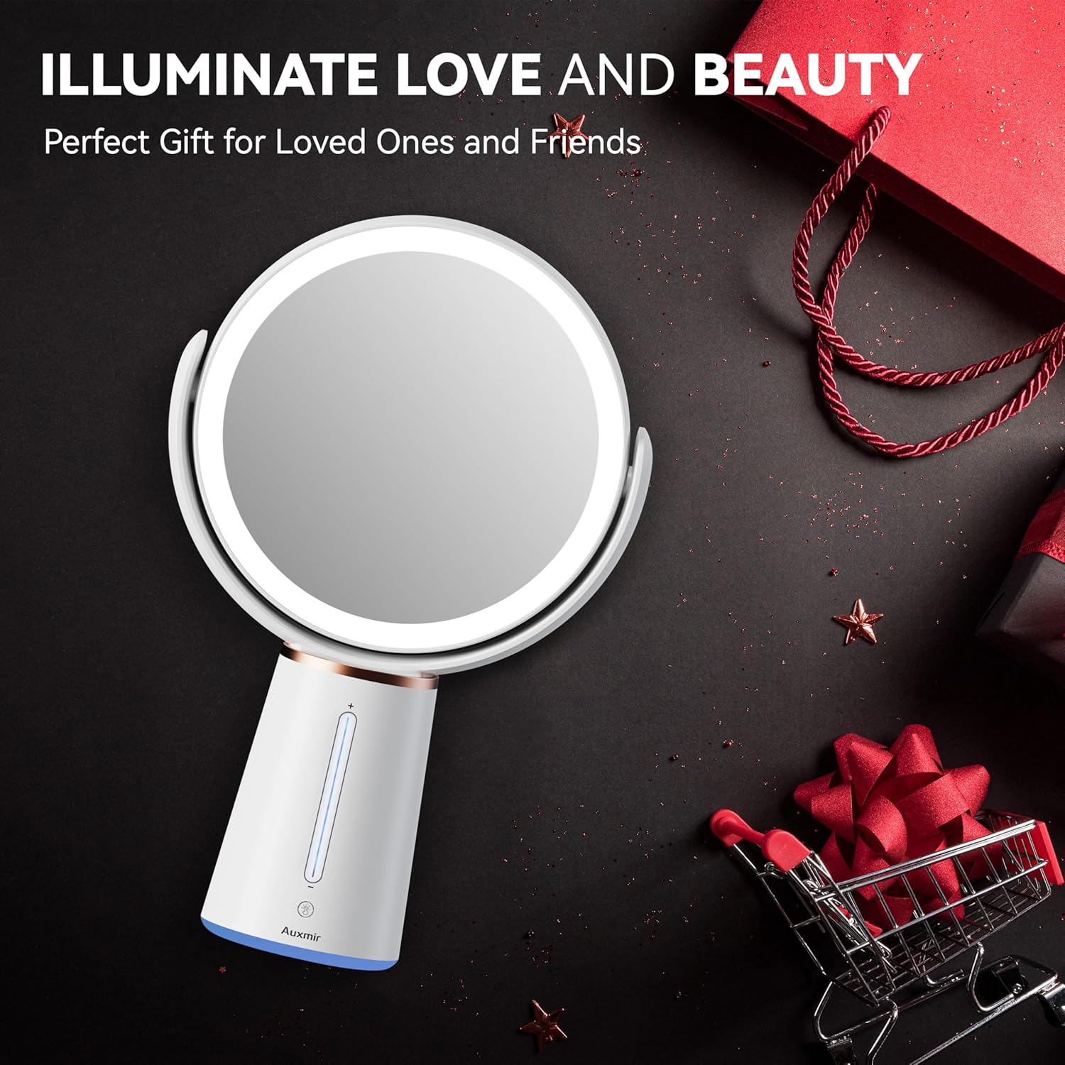 Козметично огледало Auxmir с LED осветление и 1X/10X увеличение, двустранно огледало за грим с 10 регулируеми яркости, акумулаторно огледало за бръснене, въртящо се на 360°