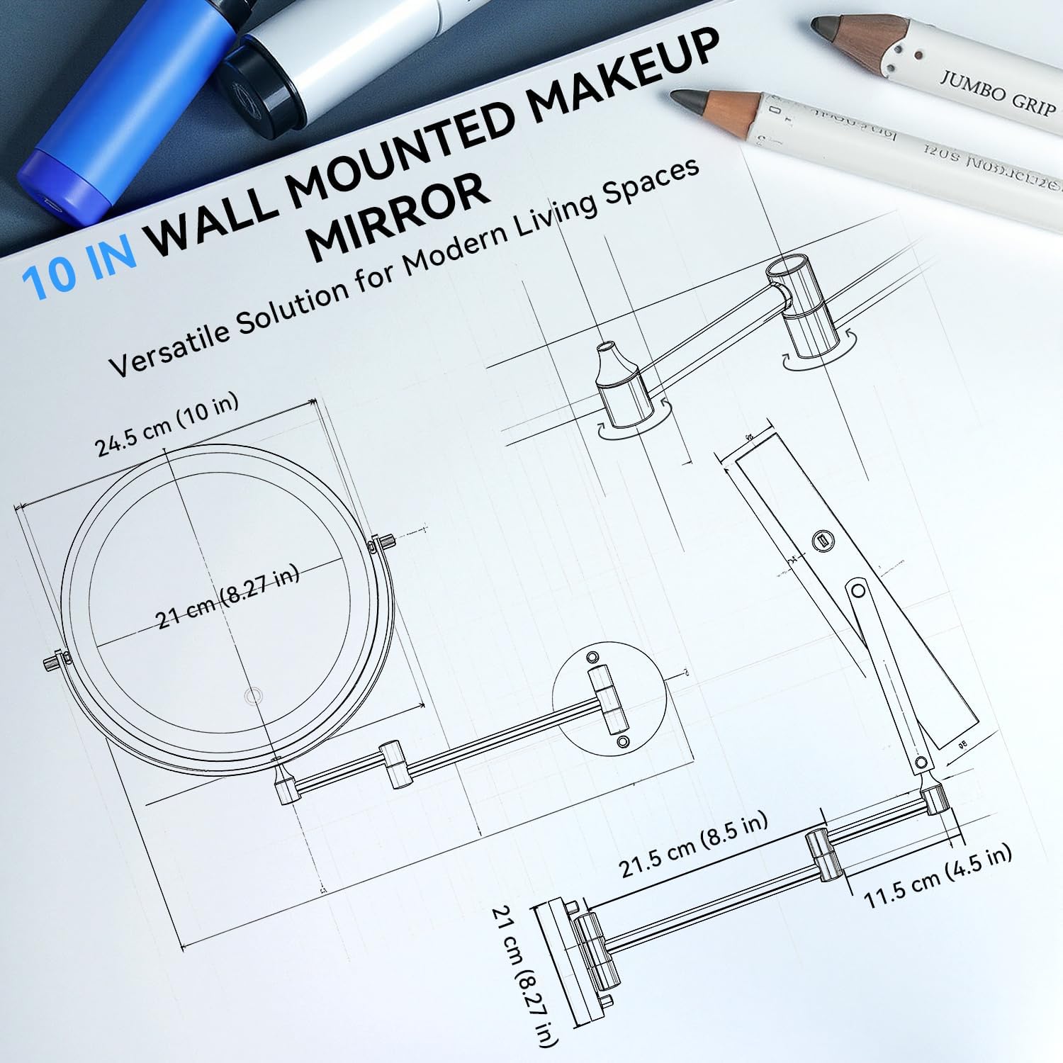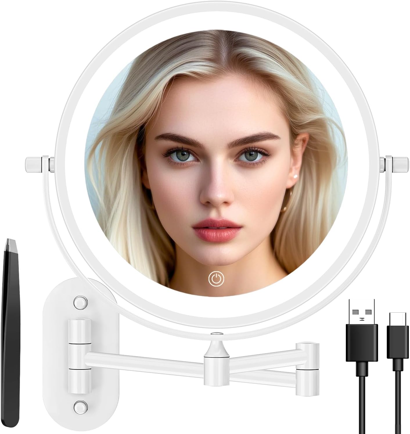 • Въртящо се на 360° и сгъваемо: с въртящ се на 360° дизайн и прибиращо се рамо на огледалото за грим, монтирано на стена, можете да намерите най-подходящия ъгъл за употреба. Сгъва се, за да спести място, дори когато не се използва.
