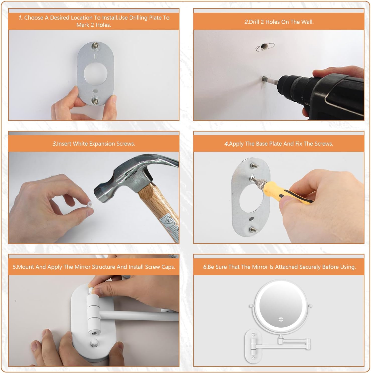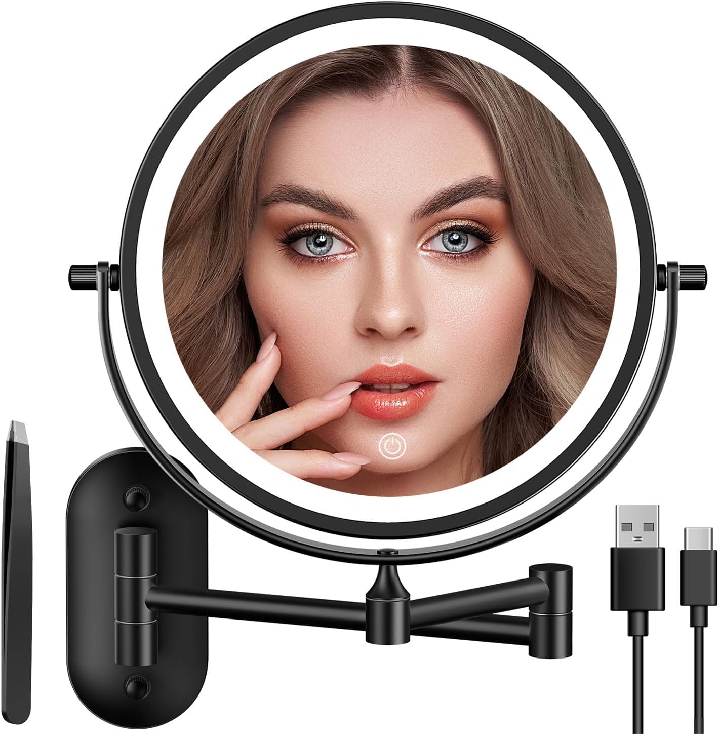 • Въртящо се на 360° и сгъваемо: с въртящ се на 360° дизайн и прибиращо се рамо на огледалото за грим, монтирано на стена, можете да намерите най-подходящия ъгъл за употреба. Сгъва се, за да спести място, дори когато не се използва.