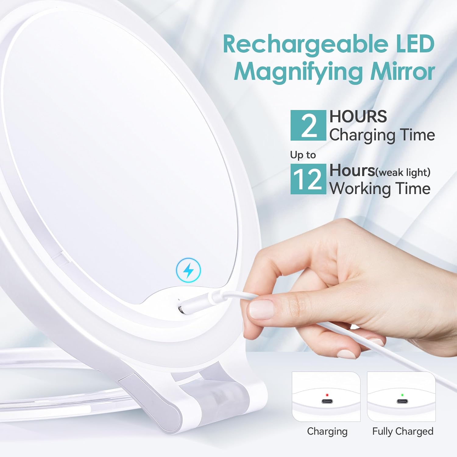 • 【ПОДАРЪК, КОЙТО ЩЕ ОБИЧАТ】Изненадайте някой специален с това огледало за грим със светлина, увеличение и козметично огледало в едно. То е идеално за професионалисти, любители на красотата и всеки, който иска да постигне безупречен външен вид.