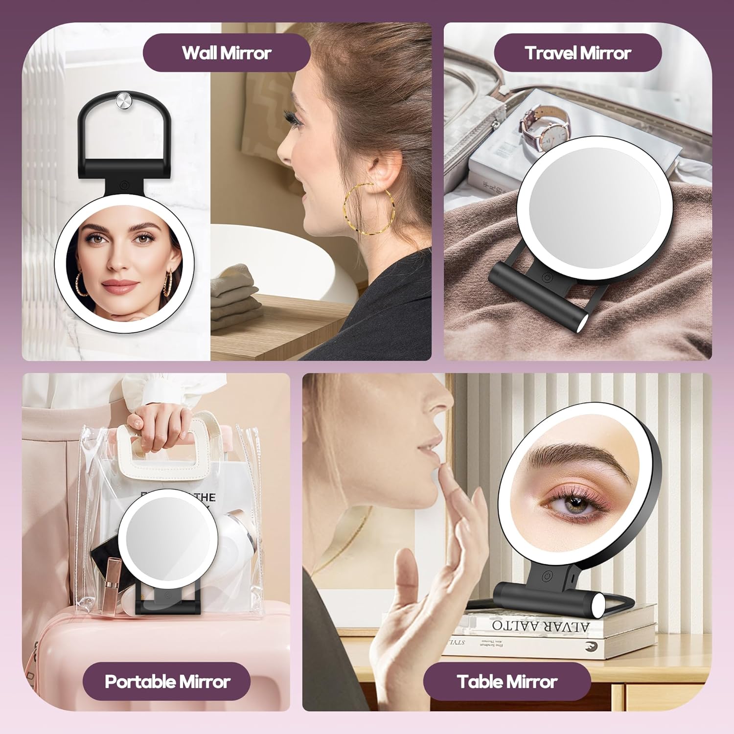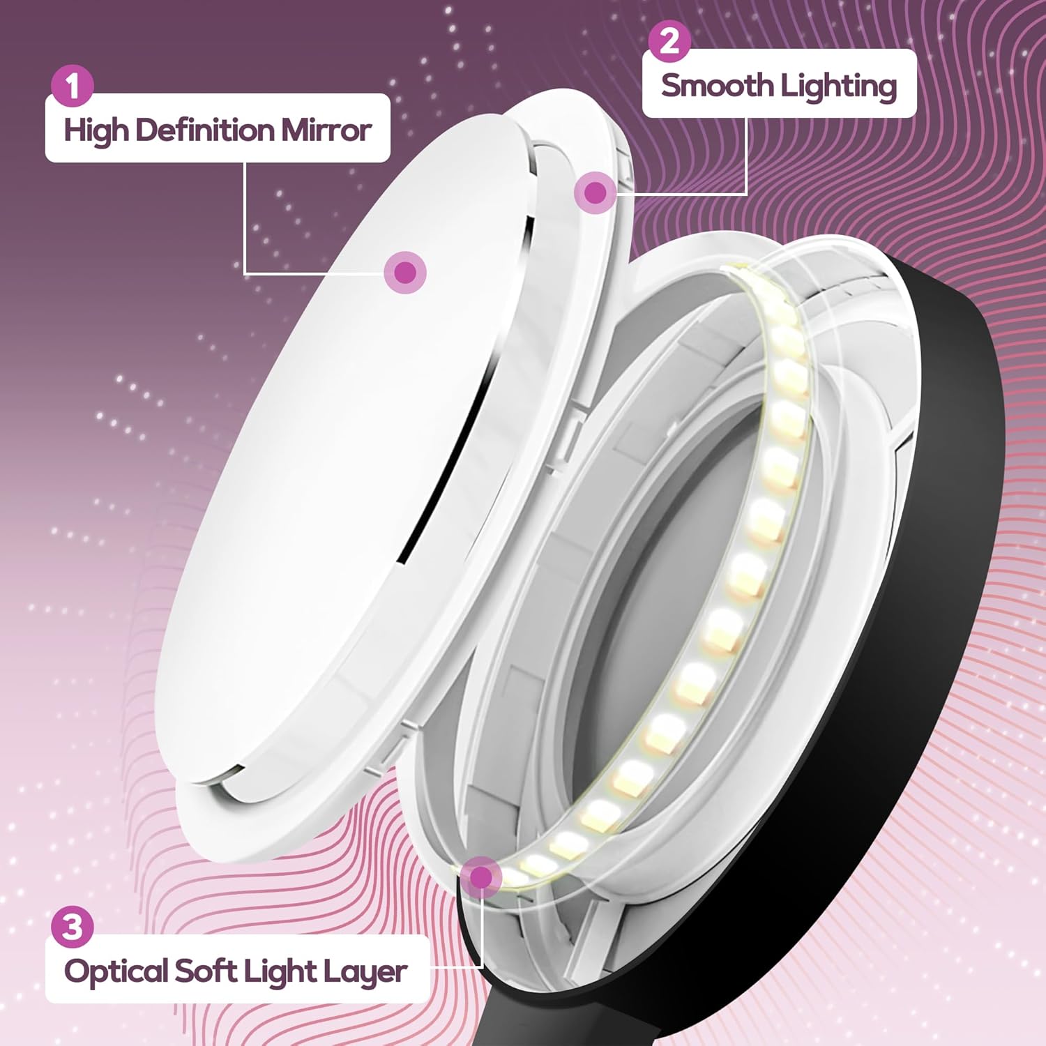 • 【ПОДАРЪК, КОЙТО ЩЕ ОБИЧАТ】Изненадайте някой специален с това огледало за грим със светлина, увеличение и козметично огледало в едно. То е идеално за професионалисти, любители на красотата и всеки, който иска да постигне безупречен външен вид.