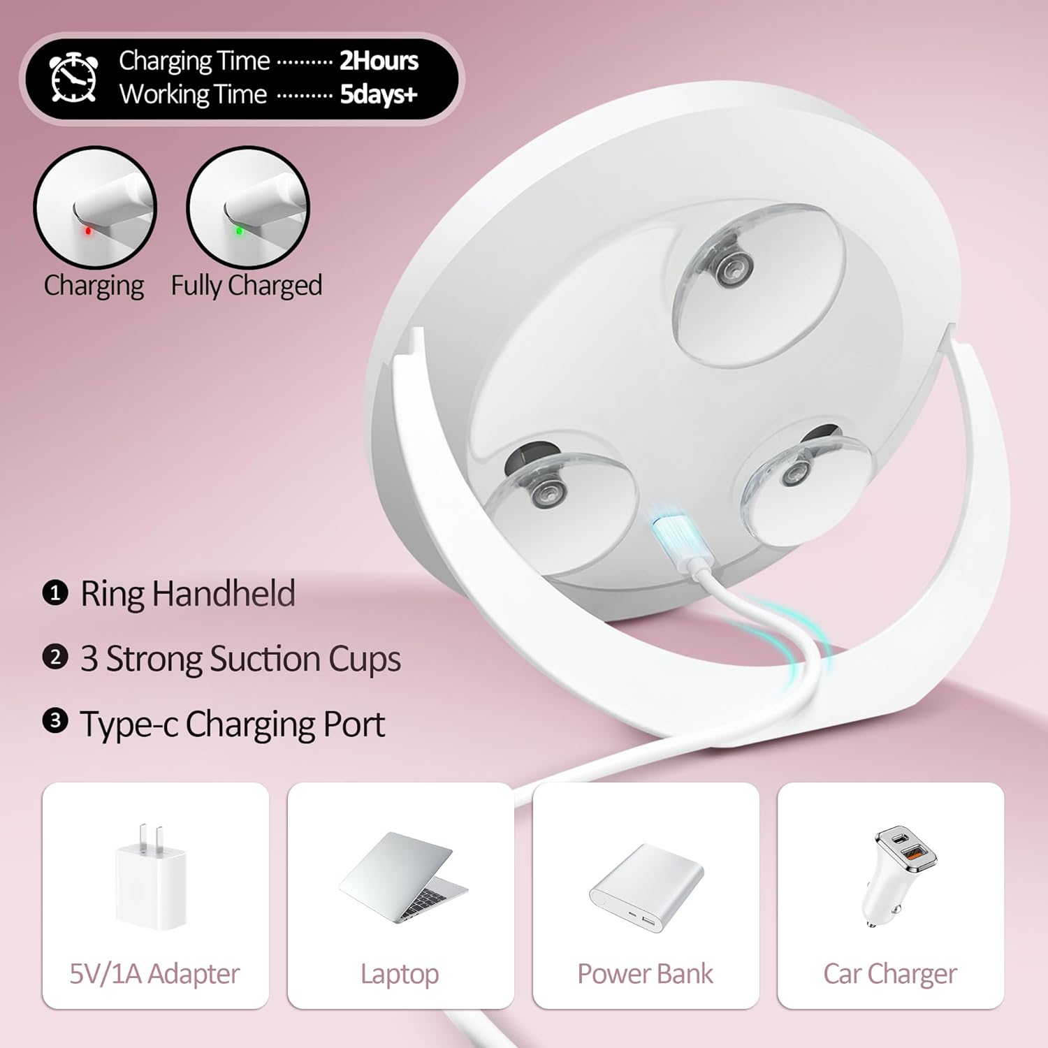 • Преносимо огледало за пътуване - С тегло само 224 г, то се побира във всяка чанта за пътуване. 2,5 часа зареждане е достатъчно за една седмица - без често зареждане или смяна на батерията. Идеално като преносимо увеличително огледало за грим в движение. Type-C портът работи с външни батерии/лаптопи.
