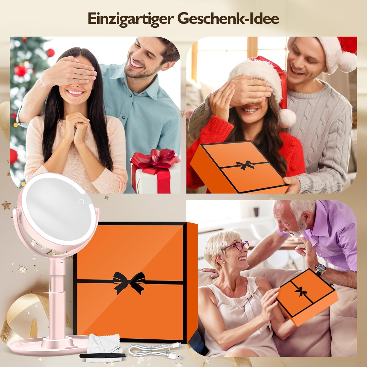 • Идеален подарък и широко приложение: LED козметичното огледало 20x е универсален гримьорски аксесоар, който може да се използва като настолен аксесоар, ръчно огледало за грим с осветление или акцент за окачване на стена. Плавен преход между тези три опции чрез регулиране на компонентите му. Независимо дали е рожден ден, годишнина или празник, нашето увеличително огледало е обмислен и практичен подарък. Стилният му дизайн и многофункционалните му функции го правят перфектен подарък за любителите на грима, пътуващите и всеки, който винаги иска да изглежда по най-добрия начин.