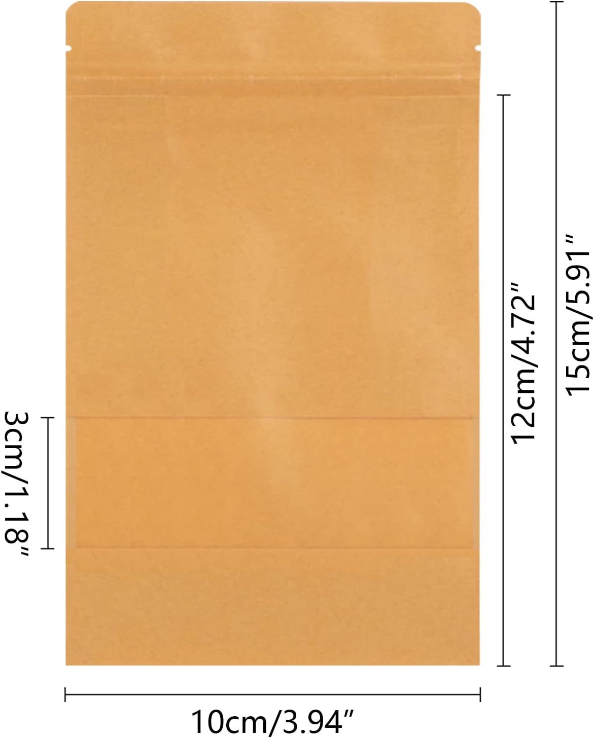 Крафт хартиените торбички са идеални за съхранение на добре изсушени храни, ядки, сладкиши, кафе на зърна, зърнени храни, закуски, семена, боб и дехидратирани билки и др. Кафявата торбичка с прозорец за гледане е подходяща за Коледа, Хелоуин, Ден на майката, Великден, събития като партита, рождени дни, сватби.