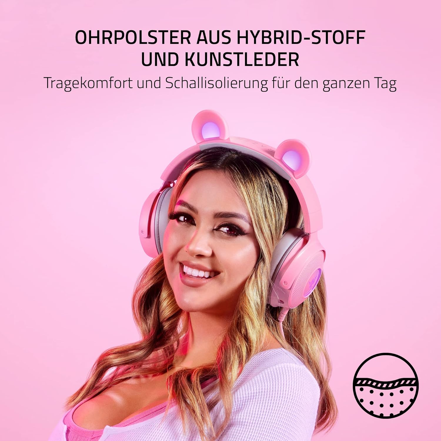 • Уши и наушници тип „котешки“ Захранвани от Razer Chroma RGB: Благодарение на 16,8 милиона цвята и безброй ефекти, можете да регулирате осветлението на слушалките според насъщността си и да създадете индивидуален стил, който перфектно подчертава вашата уникална личност.