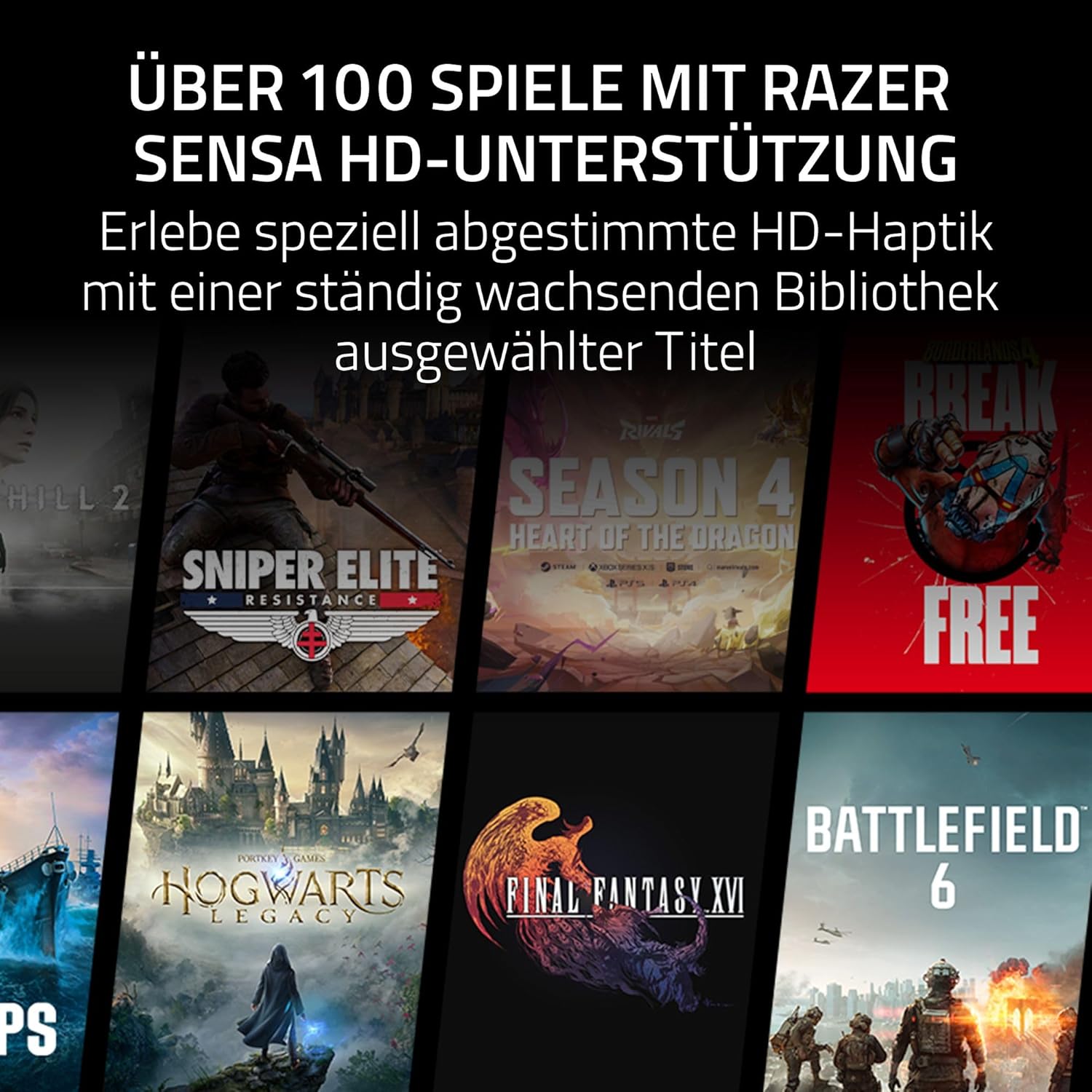 • Razer Hypersense за сензорна обратна връзка чрез докосване и още по-голямо потапяне: Слушалките трансформират аудио сигналите във вибрации в реално време, осигурявайки тактилна обратна връзка чрез наушниците, чиято интензивност може лесно да се регулира с помощта на бутон на слушалките.