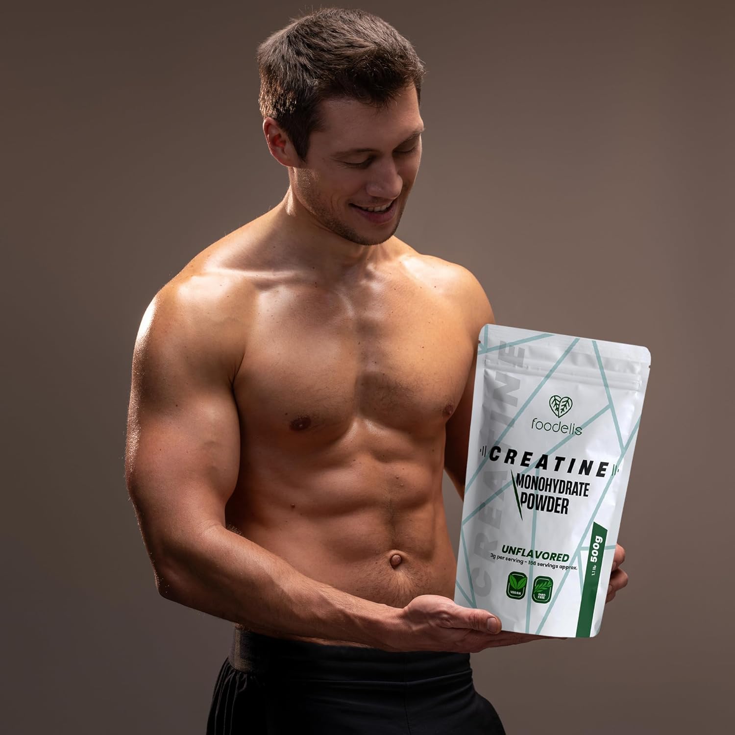 • Повишава физическата работоспособност и мускулната сила. С креатин на прах Foodelis можете значително да увеличите своята сила, спортни постижения и мускулна маса. Съкращава времето за възстановяване след тренировка и насърчава протеиновия синтез.