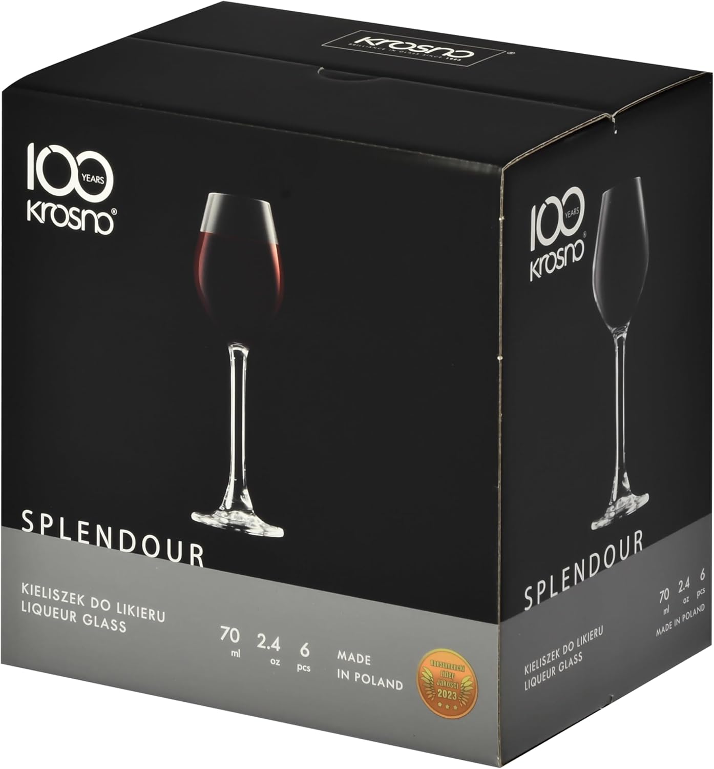 Чашите за ликьор Splendour от Кросно съчетават класическа елегантност с модерен стил. С вместимост от 70 мл, те са идеални за сервиране на ликьори, водка или спиртни напитки. Тясната им купа върху висока, елегантна стойка подчертава деликатната природа на напитката и осигурява удобно боравене. Изработени от безоловно кристално стъкло, чашите впечатляват с изключителната си прозрачност и фин блясък. Издръжливата чаша запазва красотата и блясъка си дори след продължителна употреба. Колекцията Splendour е същността на минимализма и елегантността – създадена да превърне всяка дегустация в истинско удоволствие.