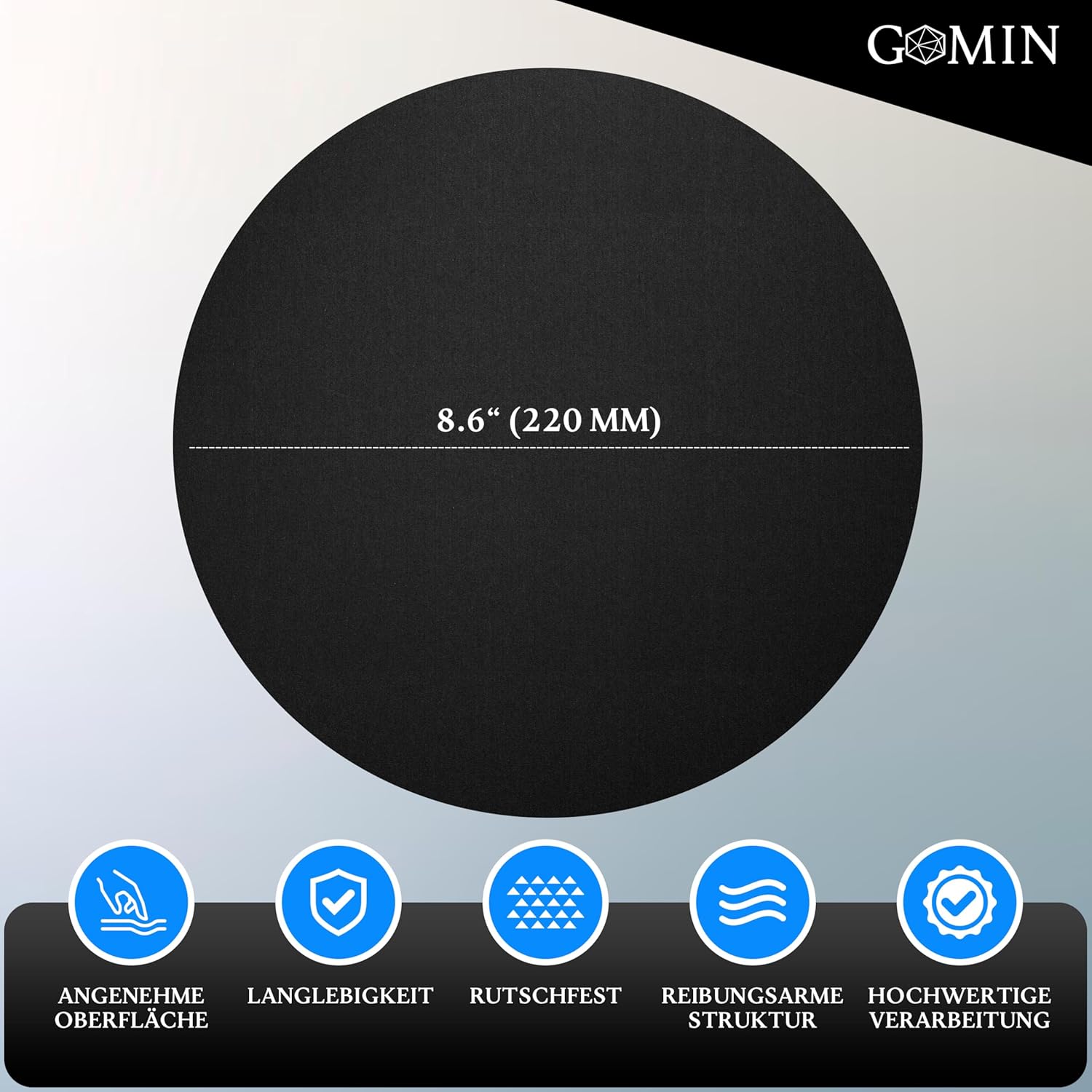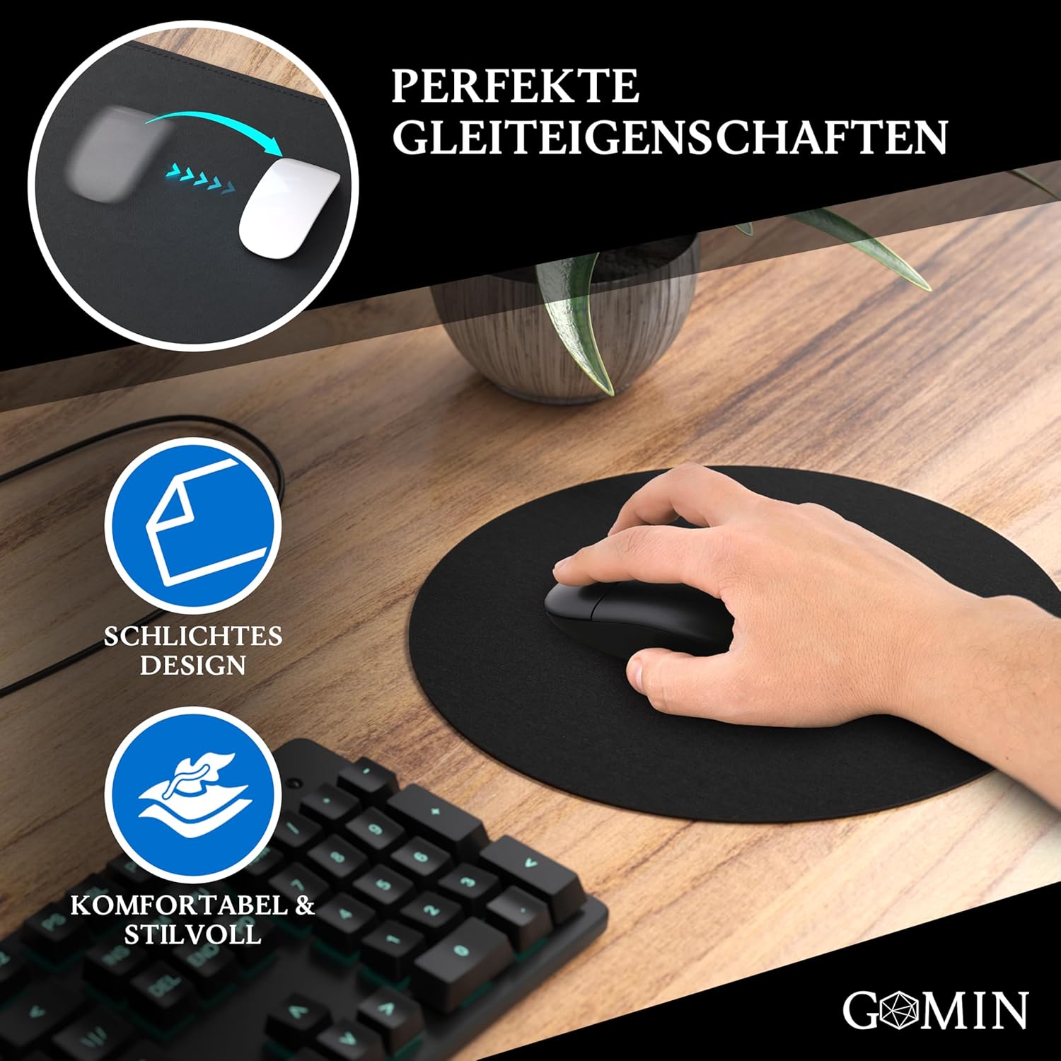 Кръгла подложка за мишка Gomin Gaming - диаметър 22 см, неплъзгаща се - без смущаващо лого и ресни - подобрява скоростта и прецизността за офис, компютър, лаптоп - черна