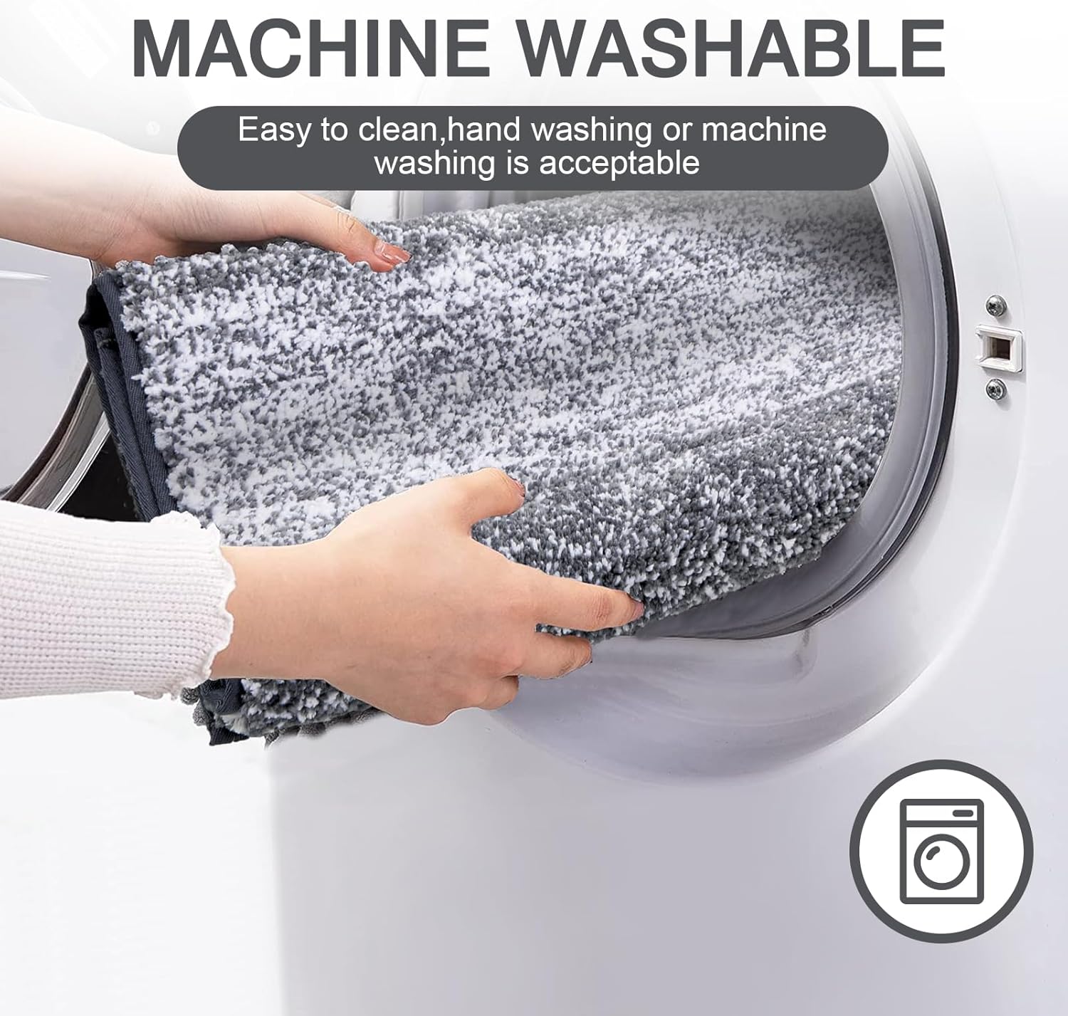 • Голям капацитет за абсорбиране на вода: рошавата микрофибърна постелката за баня е по-абсорбираща от памучните килими за баня. Високият 15 мм косъм предпазва пода от капене на вода, докато излизате от ваната, душа или спа центъра, или се приготвяте до мивката. Влагата се задържа в дълбокия косъм на постелката за баня, поддържайки пода на банята чист и сух.
