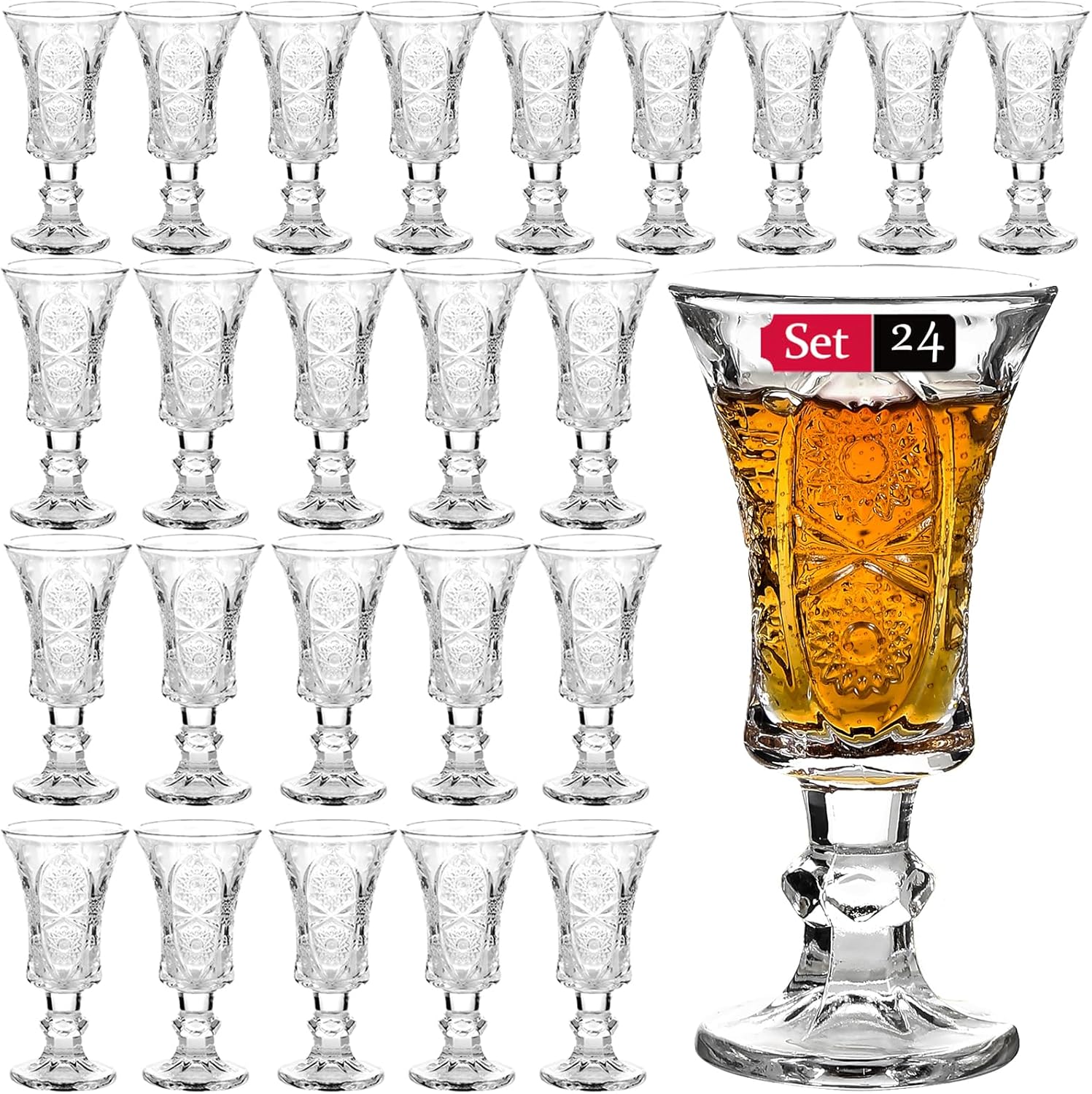 Размер: В 10 см Ш 5 см, Комплект от 6 чаши за шотове. Вместимост: 45 мл. Тези чаши за шотове са идеални за водка, текила, скоч, ликьор и шотове с ликьор. ПЕРФЕКТНИ - Кръглият капацитет от 1,3 унции (35 мл) е идеален за уиски, водка, текила, ликьор, еспресо, десерти и шотове с ликьор. Идеални за дома, бар, хотел, ресторант, курорт и нощен клуб. Този перфектен комплект чаши за шотове ще добави блясък на следващото ви семейно събиране. 100% гаранция за качество. 30-дневна гаранция за връщане на парите, ако не сте доволни.