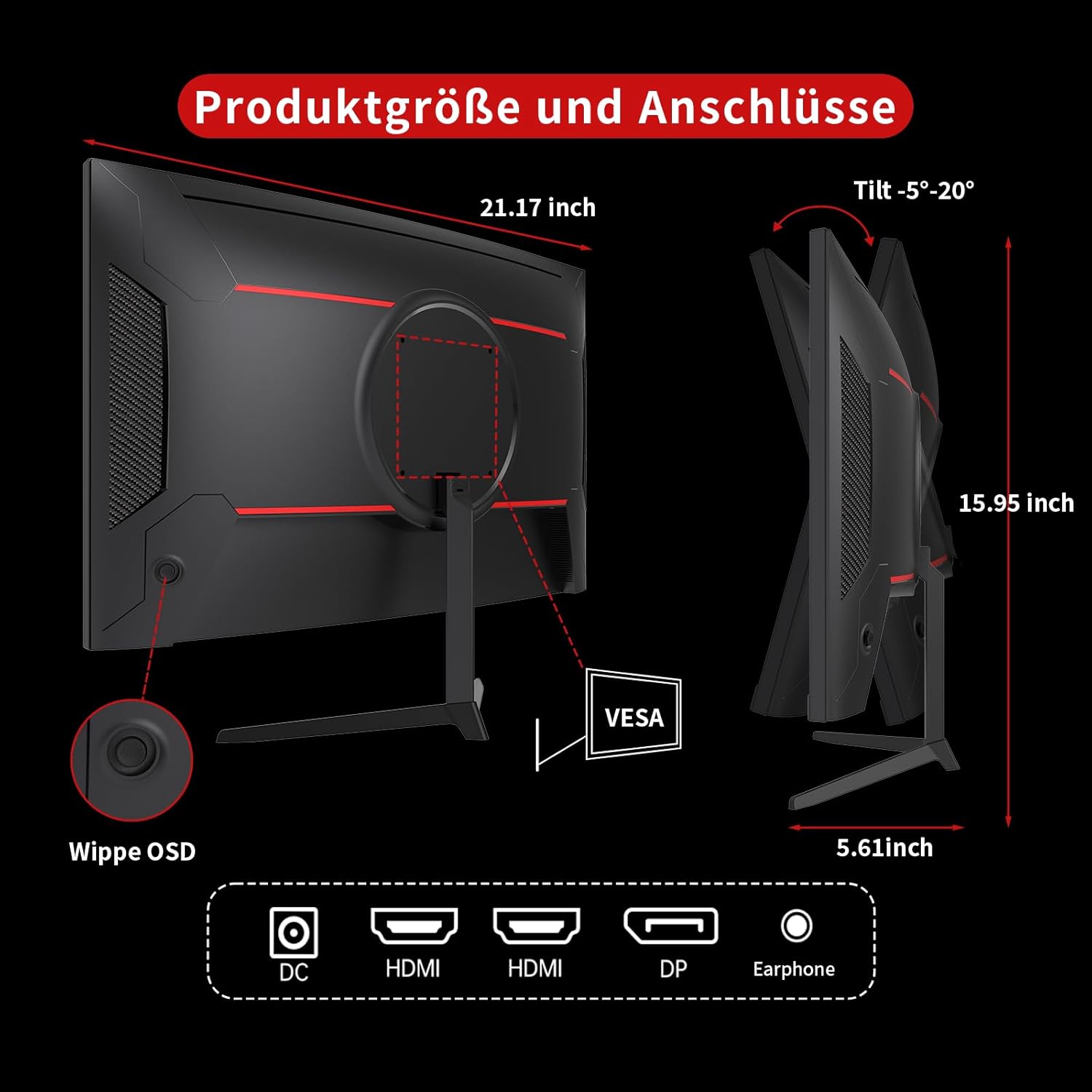 • Гъвкава свързаност и регулиране на наклона: Офис мониторът има 2 HDMI порта, 1 DP, 1 жак за слушалки и DC интерфейси за подобрена свързаност за игри. С регулиране на наклона от -5° до 15° можете да изберете удобен ъгъл, за да намалите натоварването си. Забележка: Не е съвместим със стенни стойки Vesa!