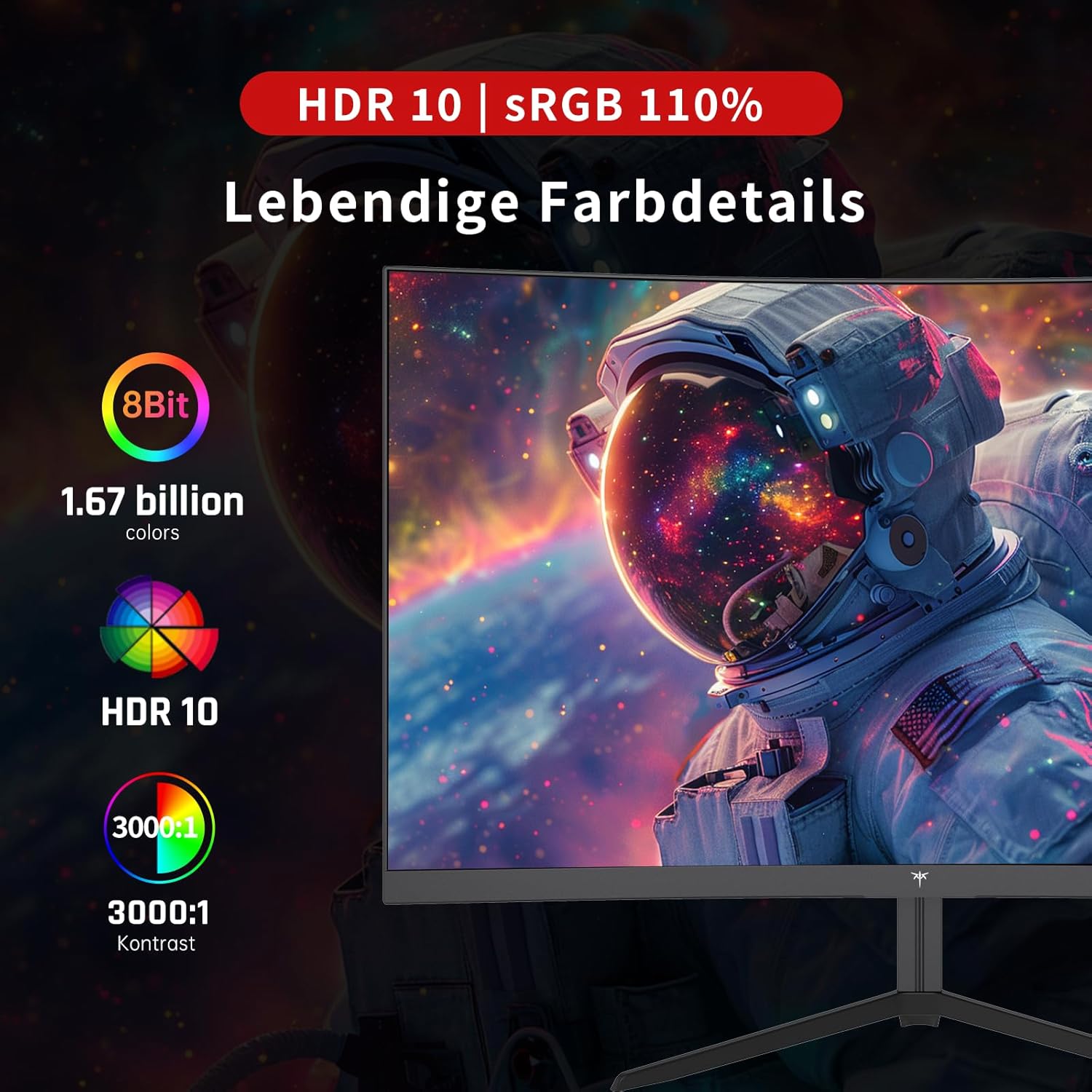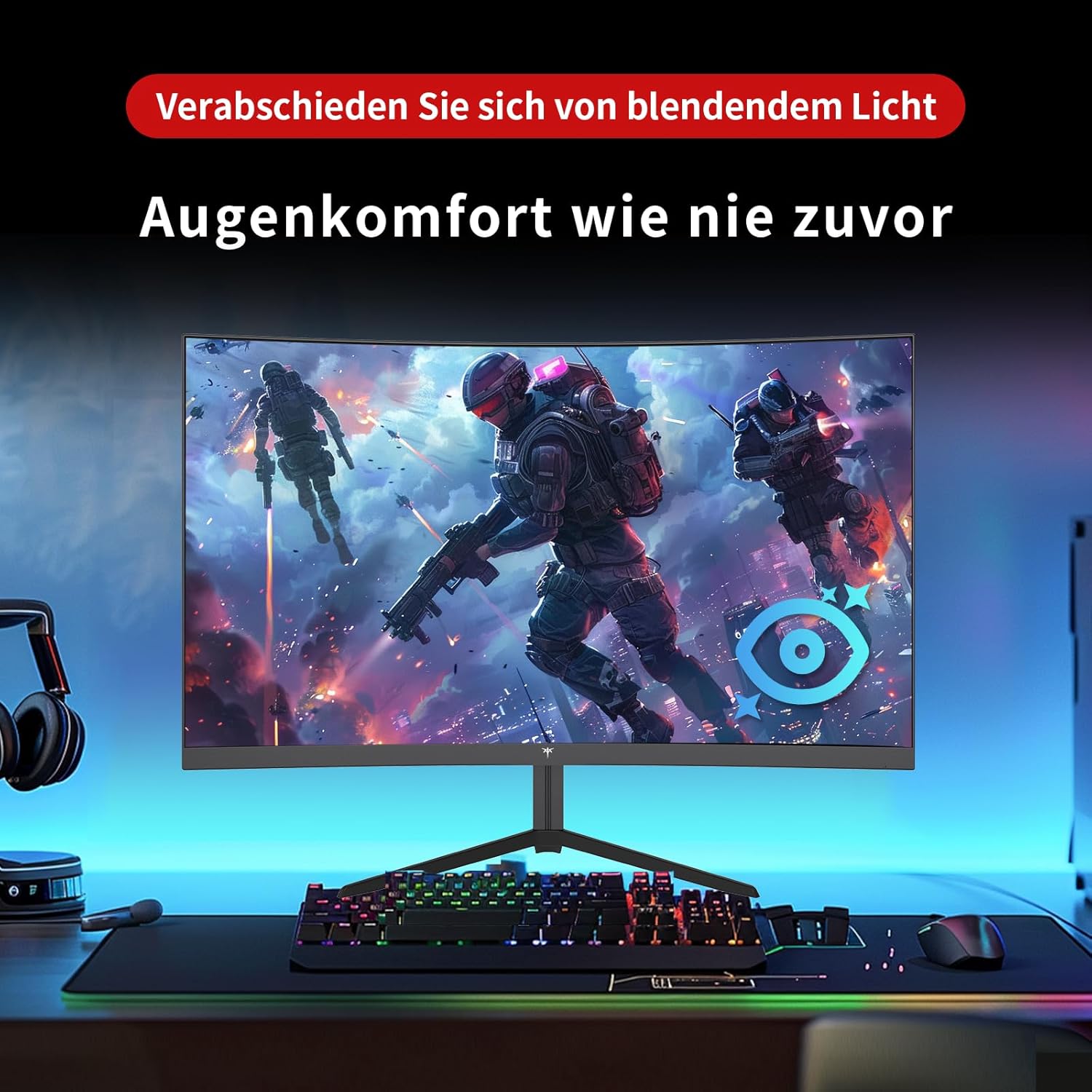 KTC 24-инчов извит геймърски монитор, 1500R, FHD (1920 x 1080p) 1 ms 180 HZ, 144 HZ, 120 HZ геймърски екран, Adaptive Sync, VA панел, HDR, HDMI 2.0/DP 1.4, Vesa 100 x 100 mm, за компютър, лаптоп, PS5 и други