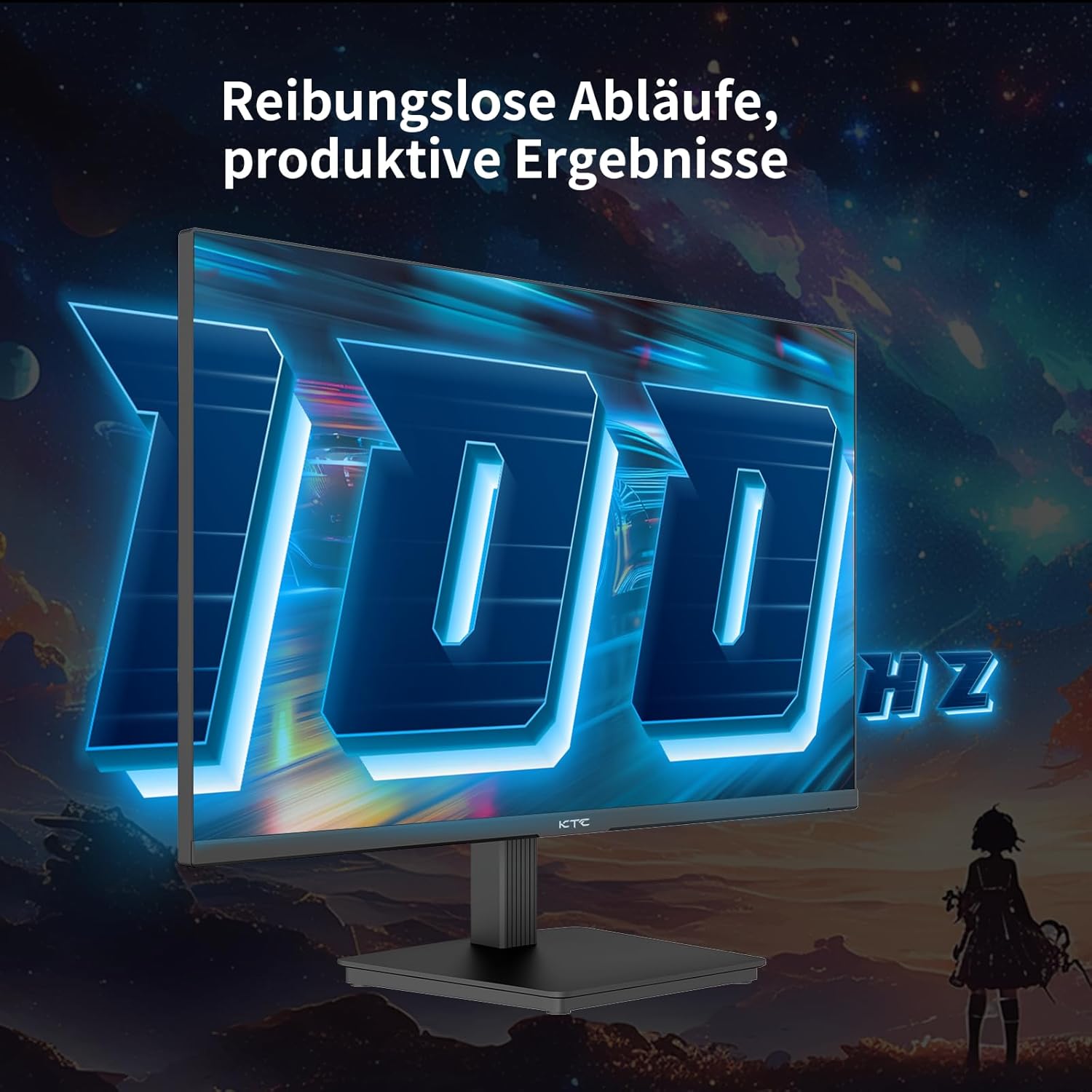 KTC 24-инчов монитор, QHD 2K, 100 HZ, IPS, компютърен монитор, контраст 1300:1, екран с анти-синя светлина, 122% sRGB, поддържа адаптивна синхронизация, HDMI/DP/слушалки за игри и офис работа, H24T27