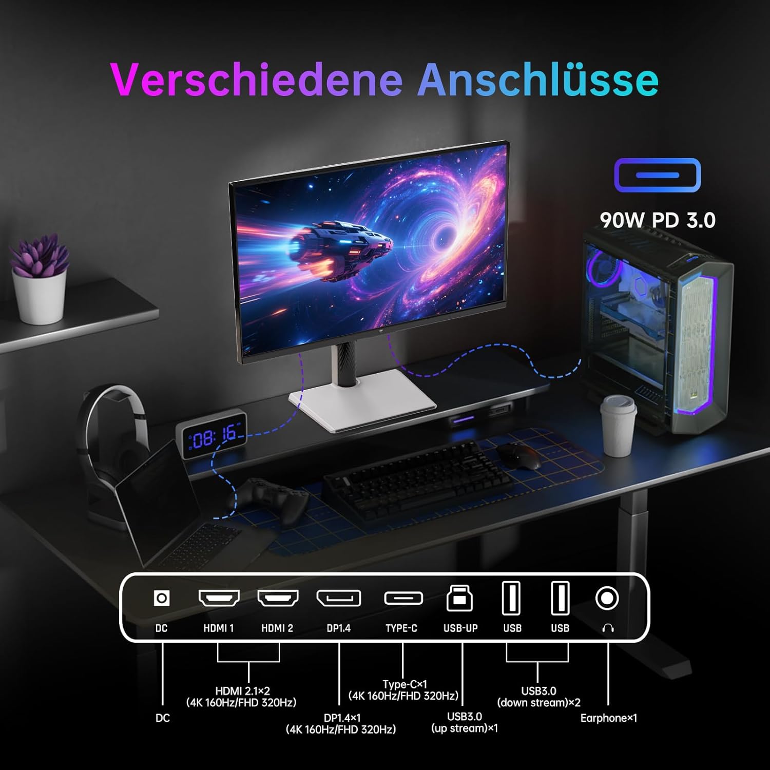 • Гъвкава свързаност и регулиране на наклона: Офис мониторът има 2 HDMI порта, 1 DP, 1 жак за слушалки и DC интерфейси за подобрена свързаност за игри. С регулиране на наклона от -5° до 15° можете да изберете удобен ъгъл, за да намалите натоварването си. Забележка: Не е съвместим със стенни стойки Vesa!