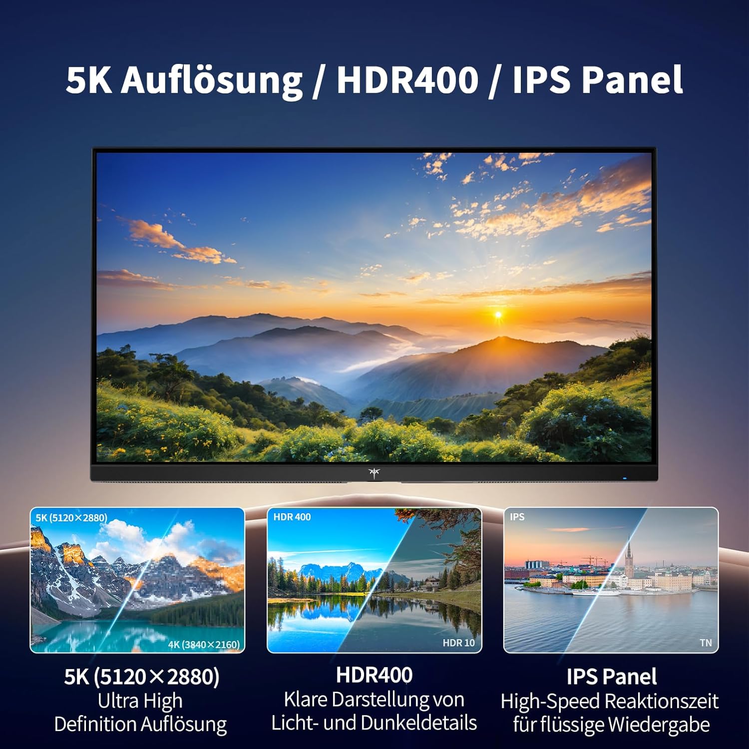 KTC 5K монитор 27 инча с двоен режим 5K (5120x2880) при 60Hz / 2K при 160Hz, безпроблемно превключване | 99% DCI-P3, 100% sRGB, ΔE<2 | 1 x USB C с пълна функционалност, 2 x USB A 3.0 | HDR400 | Съвместим с Mac Mini
