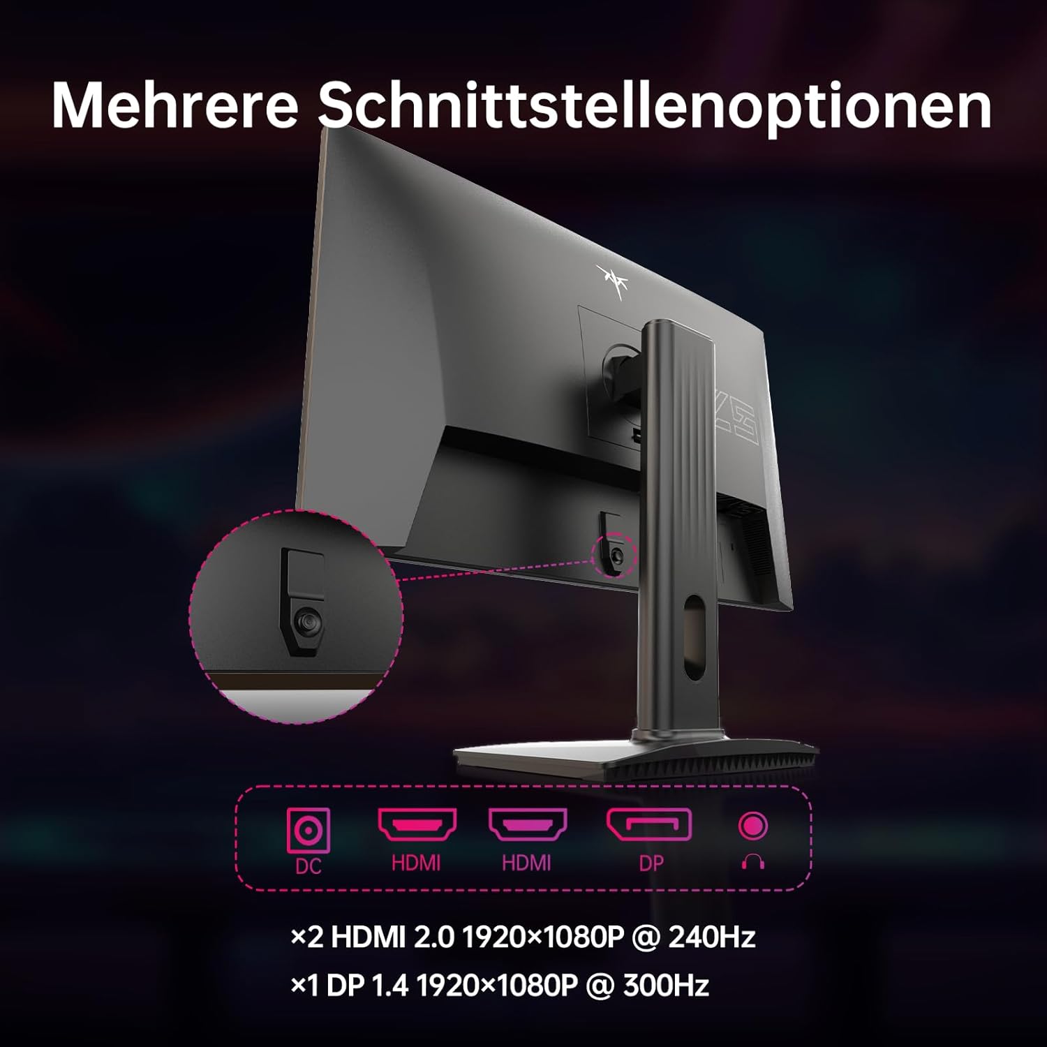 KTC Геймърски монитор 25 инча | 300Hz (OC 320Hz) | FHD 1080P | Почти IPS панел | 1ms | Адаптивна синхронизация | HDR10 | 119% sRGB | HDMI x2, DP x1 | Въртящ се, повдигаща се стойка | Стенен монтаж VESA 100 x 100 мм | H25Y7