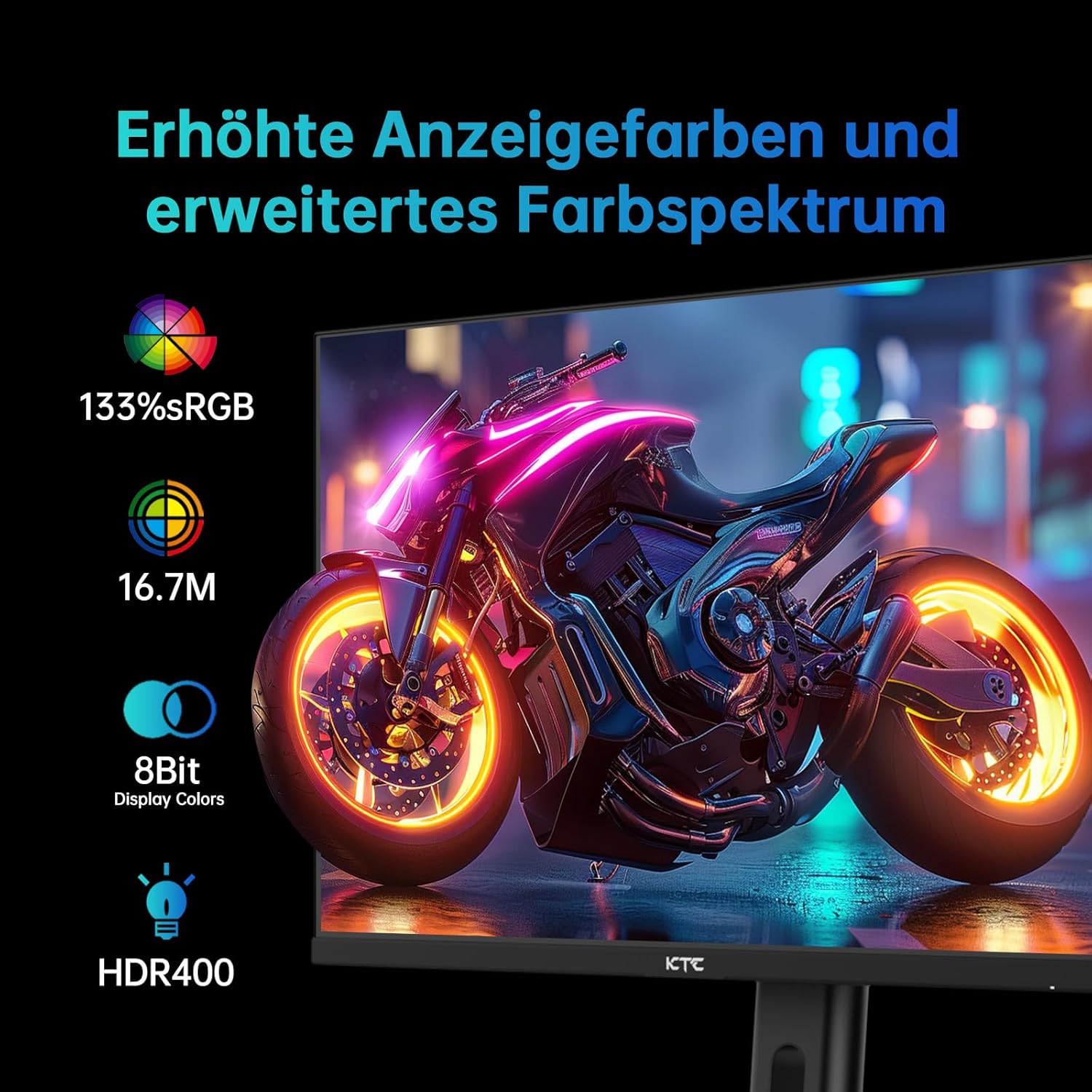 KTC Геймърски монитор, 27 инча, 2K@180 HZ/144 HZ, 1440p, с бърз IPS панел, 1 ms, GtG, HDR 400, Adaptive Sync, яркост 450 cd/m², 2 x HDMI 2.0, 1 x DisplayPort 1.4, поддръжка на повдигане и завъртане