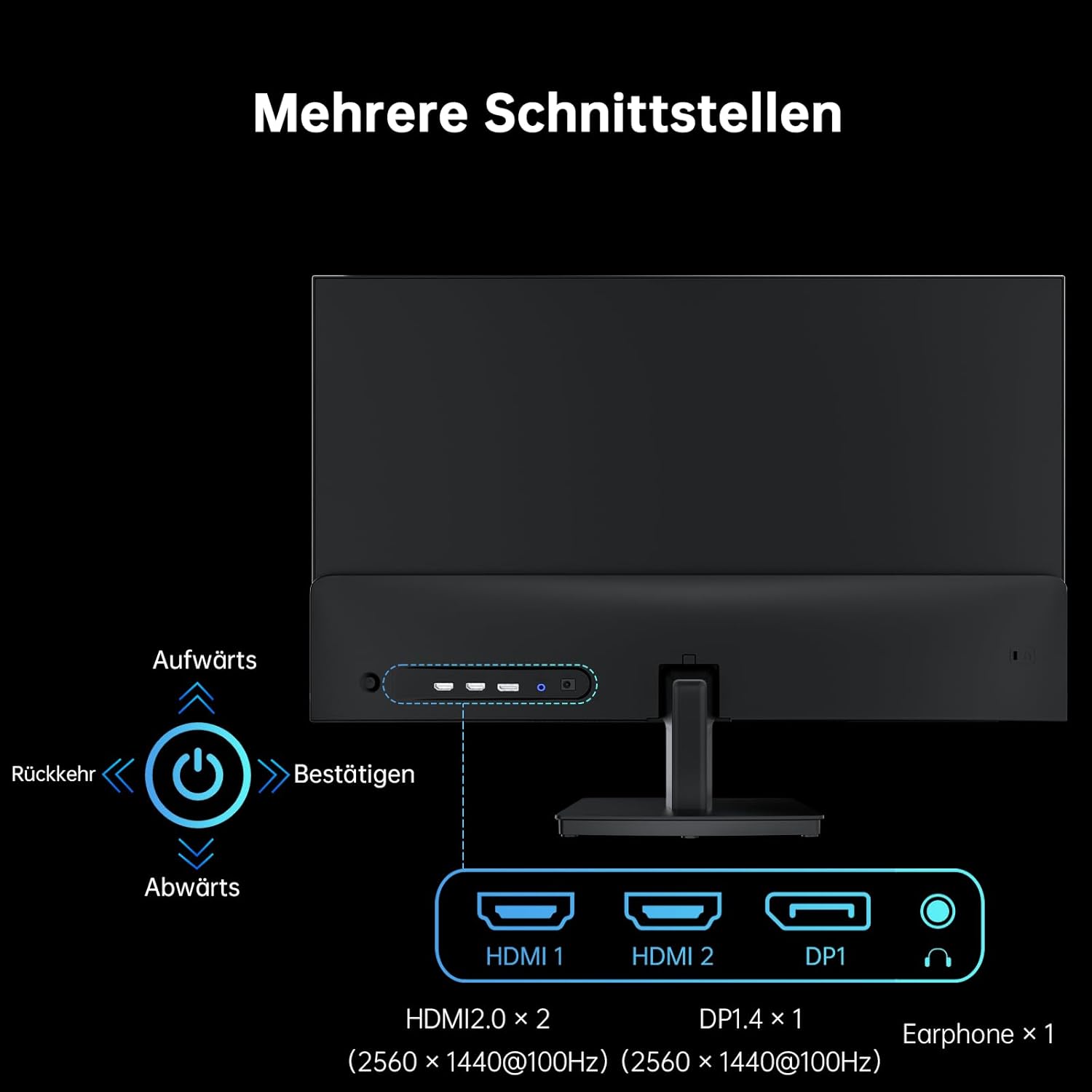 • Гъвкава свързаност и регулиране на наклона: Офис мониторът има 2 HDMI порта, 1 DP, 1 жак за слушалки и DC интерфейси за подобрена свързаност за игри. С регулиране на наклона от -5° до 15° можете да изберете удобен ъгъл, за да намалите натоварването си. Забележка: Не е съвместим със стенни стойки Vesa!