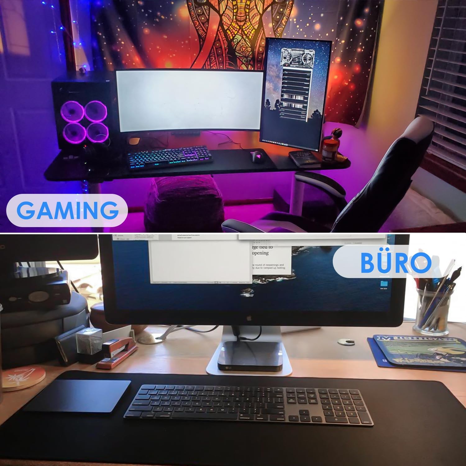 • 800 x 400 x 3 мм в разгънат размер Тази XXL подложка за мишка е достатъчно голяма за вашата геймърска мишка, механична клавиатура и други предмети на бюрото. Поддържайте бюрото чисто и без излишни предмети. Играйте със свободата да конфигурирате настройката си както желаете. Перфектна подложка за геймърска мишка за тези, които използват по-ниска DPI или просто имат повече място за маневриране.