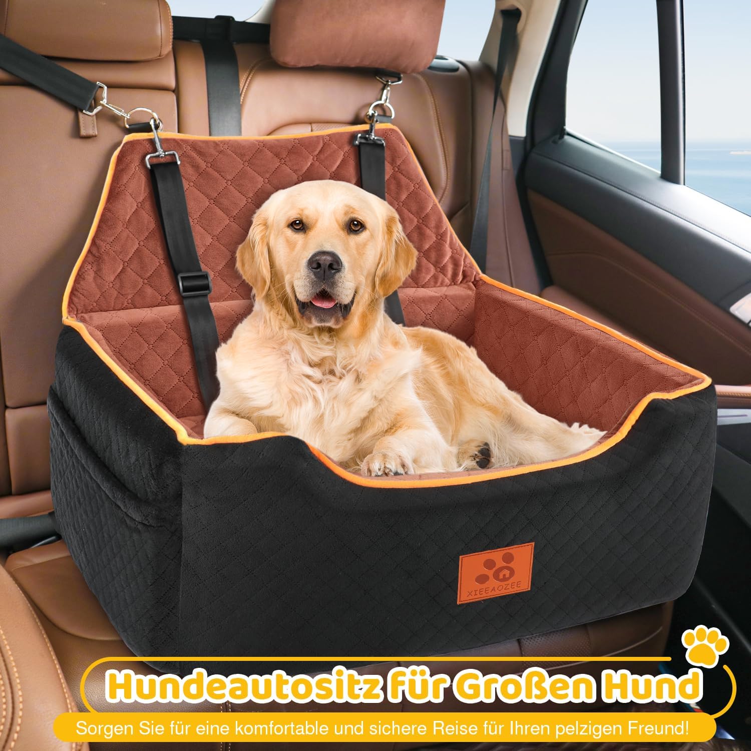 Кучешка седалка за големи/средни кучета, седалка за кучета под 23 кг или 2 малки кучета, сваляща се и переща се кучешка седалка с дебели възглавници и чанти за съхранение