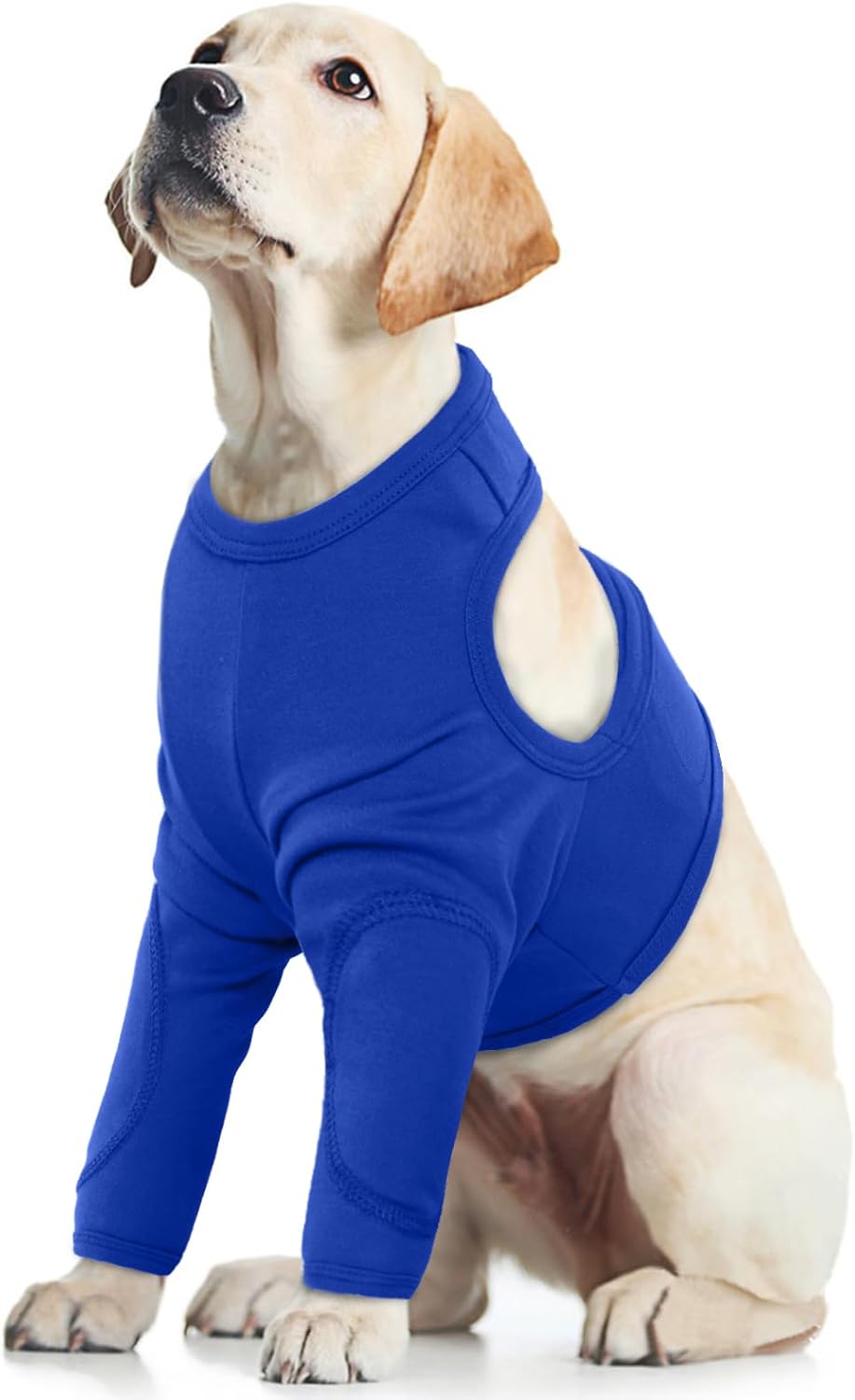 Кучешки боди с предни крака, протектори за лакти за кучета, памук, защита от облизване на предните крака (кралско синьо, 3XL)