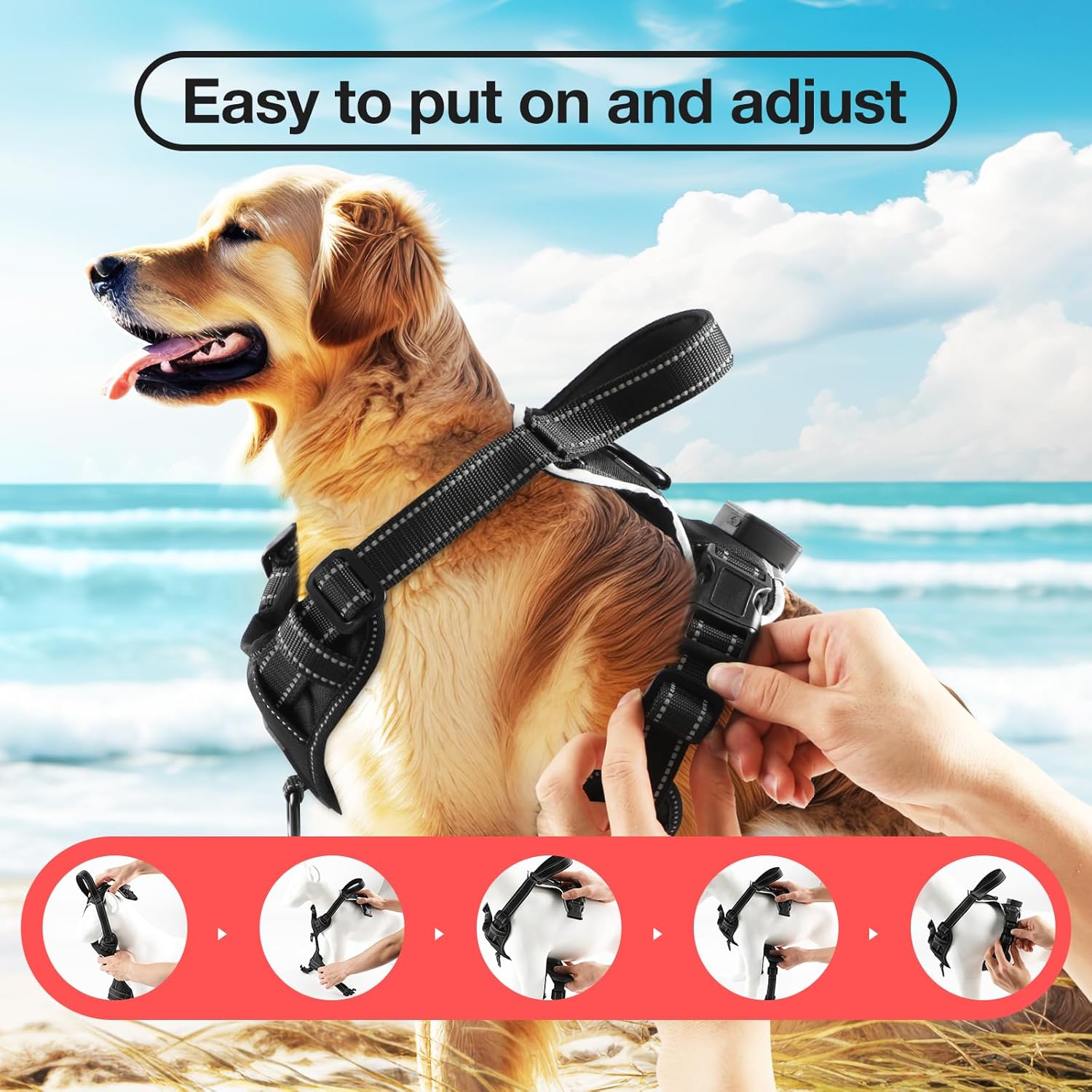 За да регулирате и нагласите правилно нагръдника за кучета MASBRILL LED, първо разхлабете бързоосвобождаващите се катарами. Поставете нагръдника на кучето си и се уверете, че има място за около два пръста между нагръдника и тялото на кучето. Регулирайте колана за врата и гърдите с 4-те лесно регулируеми каишки, като се уверите, че нагръдникът е плътно прилепнал, но не е прекалено стегнат. Прикрепете каишката или към предната щипка, за да предотвратите дърпане, или към задната щипка за спокойни разходки. Уверете се, че металните D-образни пръстени са правилно закрепени, за да разпределят равномерно опънното налягане и да предотвратят задавяне.