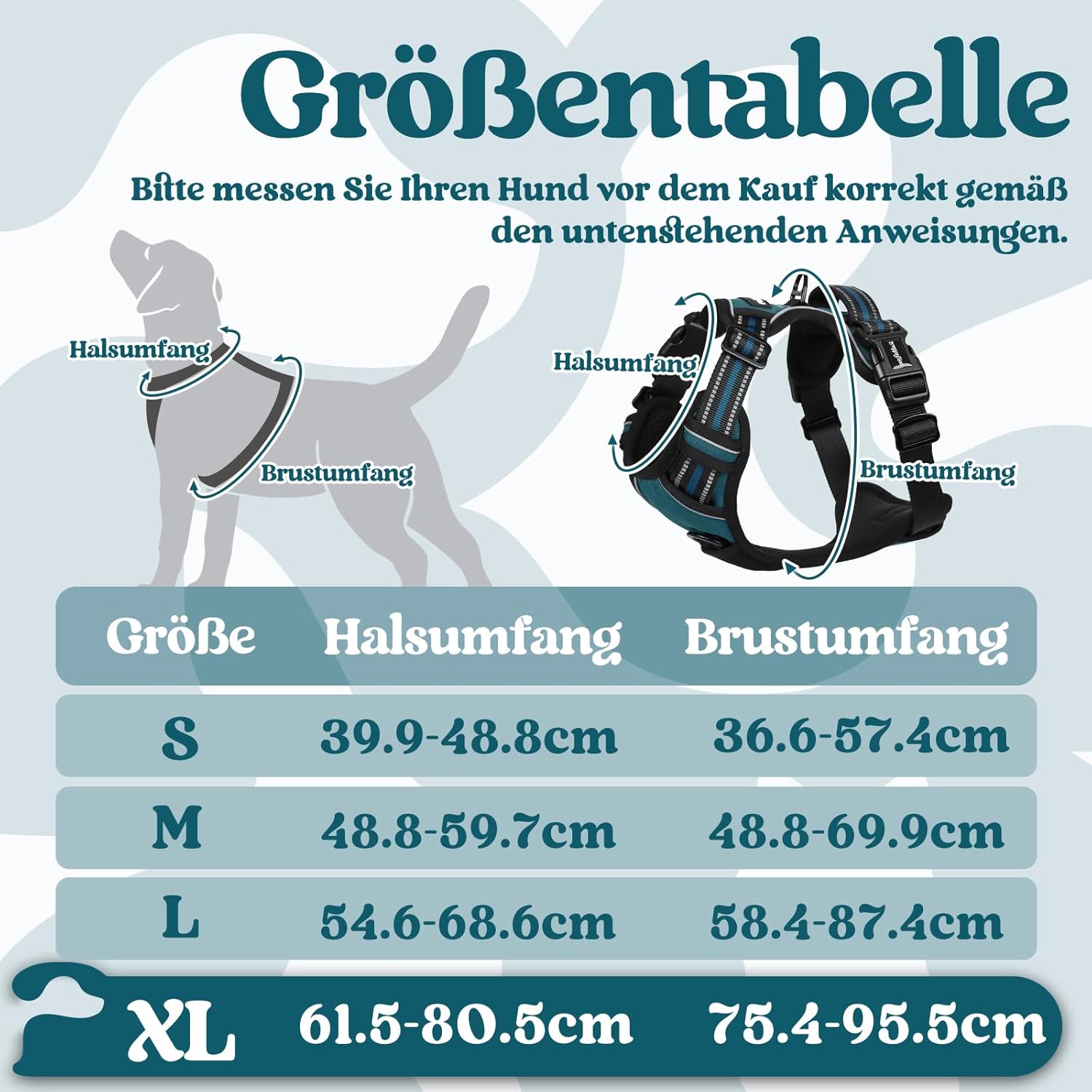 • Лесно регулиране: Четири напълно регулируеми презрамки са подходящи за повечето породи и осигуряват добро прилягане и свобода на движение, особено за кучета в бързи фази на растеж. Моля, вижте таблицата с размери, за да измерите вашия пухкав приятел и да изберете размер преди покупка. Обиколка на врата 54,6–68,6 см, обиколка на гръдния кош 58,4–87,4 см.