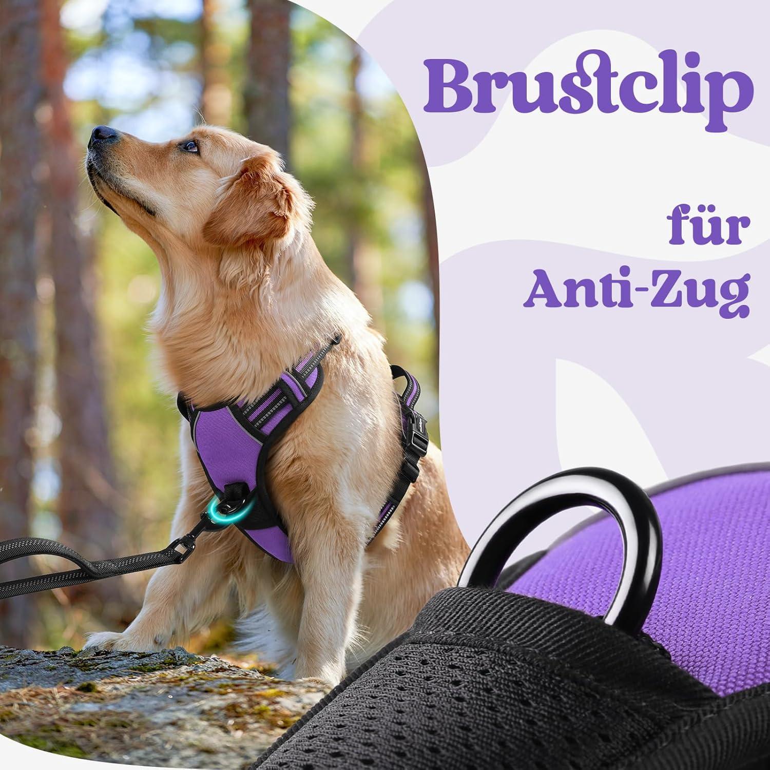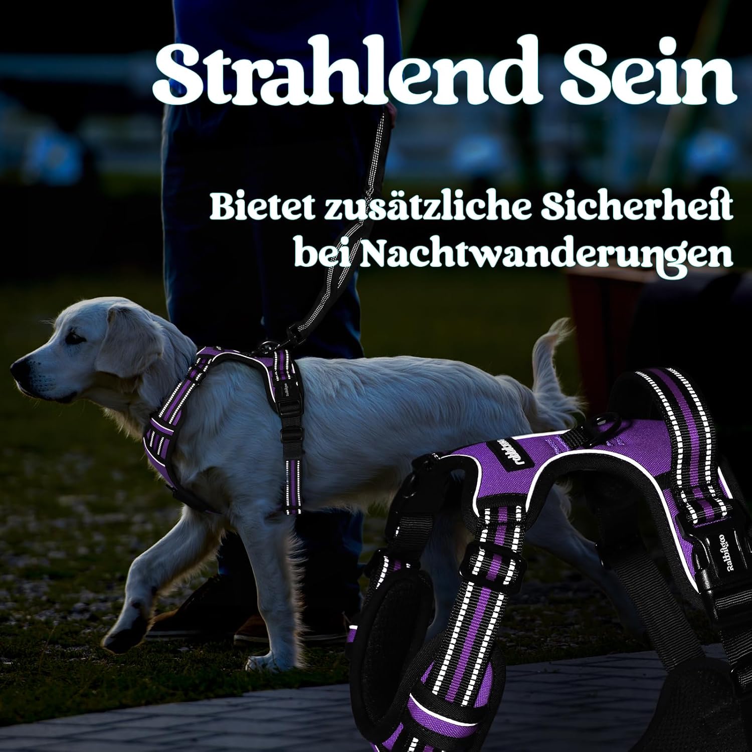 Кучешки нагръдник rabbitgoo за големи кучета, регулируем нагръдник без дърпане и задавяне, нагръдник против дърпане с дръжка, мек подплатен светлоотразителен нагръдник, лилав, XL