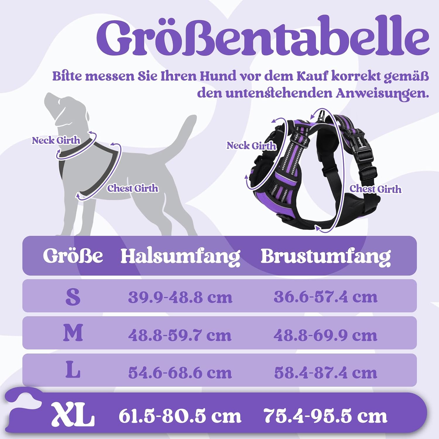 • Лесно регулиране: Четири напълно регулируеми презрамки са подходящи за повечето породи и осигуряват добро прилягане и свобода на движение, особено за кучета в бързи фази на растеж. Моля, вижте таблицата с размери, за да измерите вашия пухкав приятел и да изберете размер преди покупка. Обиколка на врата 54,6–68,6 см, обиколка на гръдния кош 58,4–87,4 см.