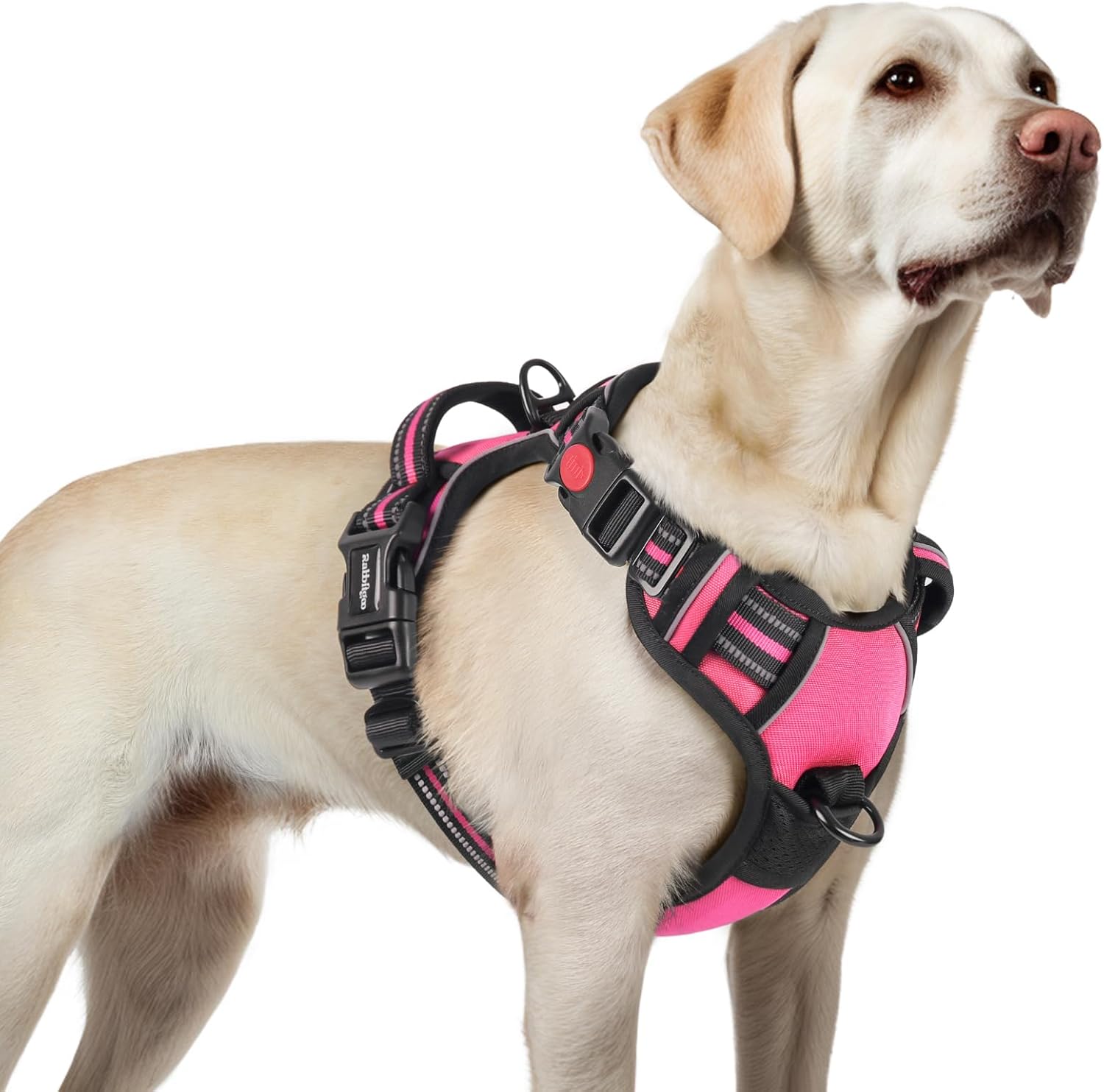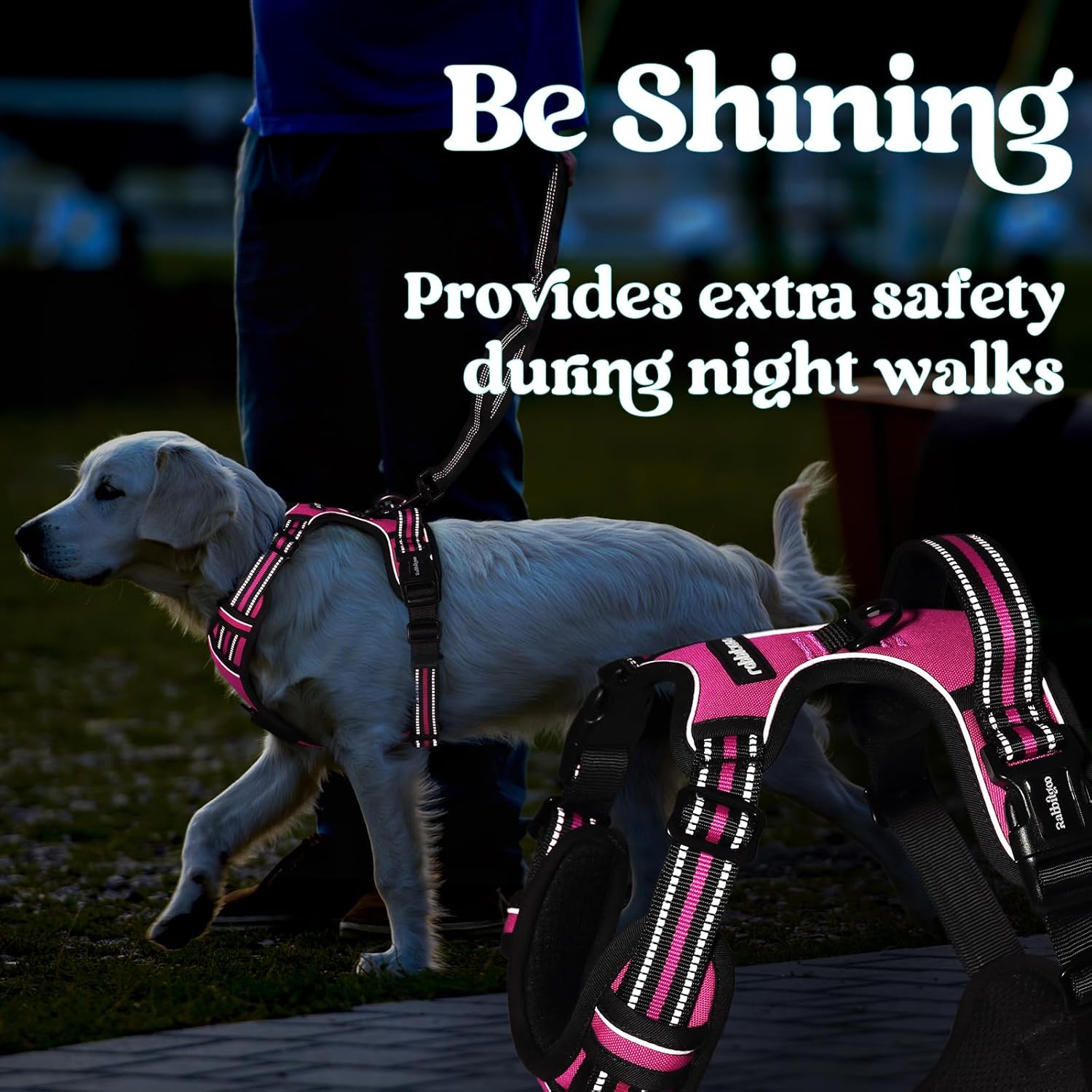 Кучешки нагръдник rabbitgoo за големи кучета, регулируем нагръдник без дърпане и задавяне, нагръдник против дърпане с дръжка, мек подплатен светлоотразителен нагръдник, розовочервен, L
