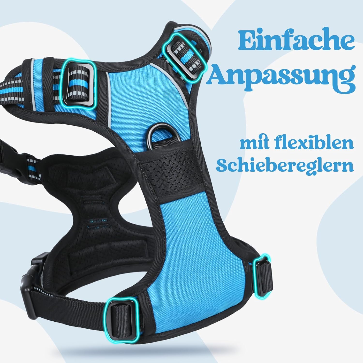 • Перфектен контрол: Нашият нагръдник за кучета против дърпане разпределя равномерно силата на дърпане и има свойства против задавяне. Нагръдникът има два цинкови пръстена на гърдите и гърба и е подходящ за ежедневни разходки, джогинг и туризъм. Ако кучето ви е ядосано или се нуждае от помощ, можете да го контролирате с дръжката отгоре.