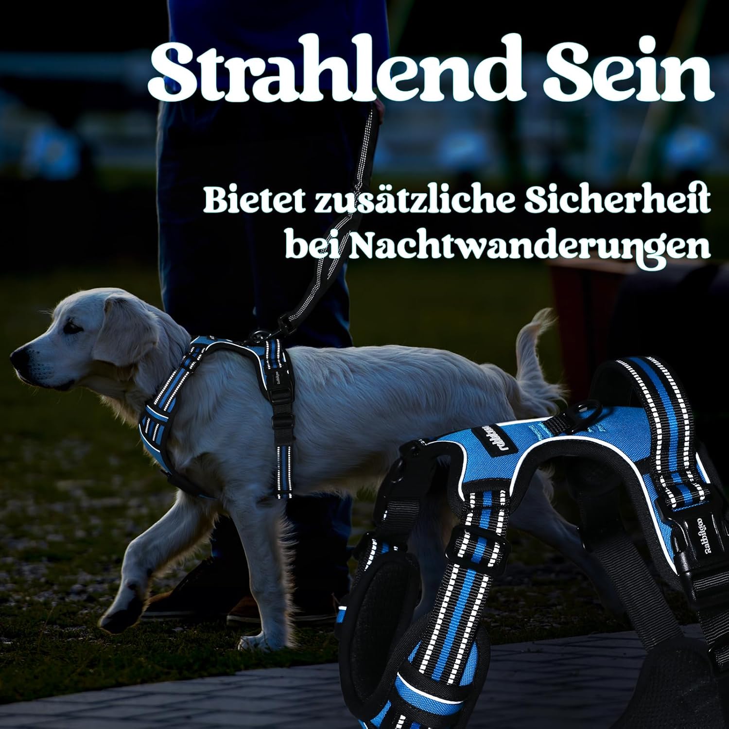 • Ултра-сигурен дизайн: Нагръдникът за кучета е изработен от износоустойчива оксфордска материя с подсилени шевове. Заключващата се катарама на врата осигурява сигурно прилягане и предотвратява случайно разхлабване. Нагръдникът е с големи светлоотразителни ивици, за да увеличи видимостта и да предпази кучето ви по време на нощни разходки.