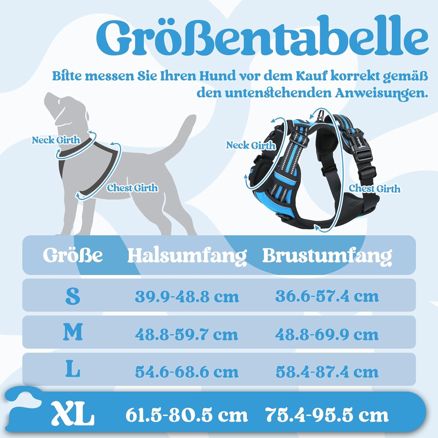 • Лесно регулиране: Четири напълно регулируеми презрамки са подходящи за повечето породи и осигуряват добро прилягане и свобода на движение, особено за кучета в бързи фази на растеж. Моля, вижте таблицата с размери, за да измерите вашия пухкав приятел и да изберете размер преди покупка. Обиколка на врата 54,6–68,6 см, обиколка на гръдния кош 58,4–87,4 см.
