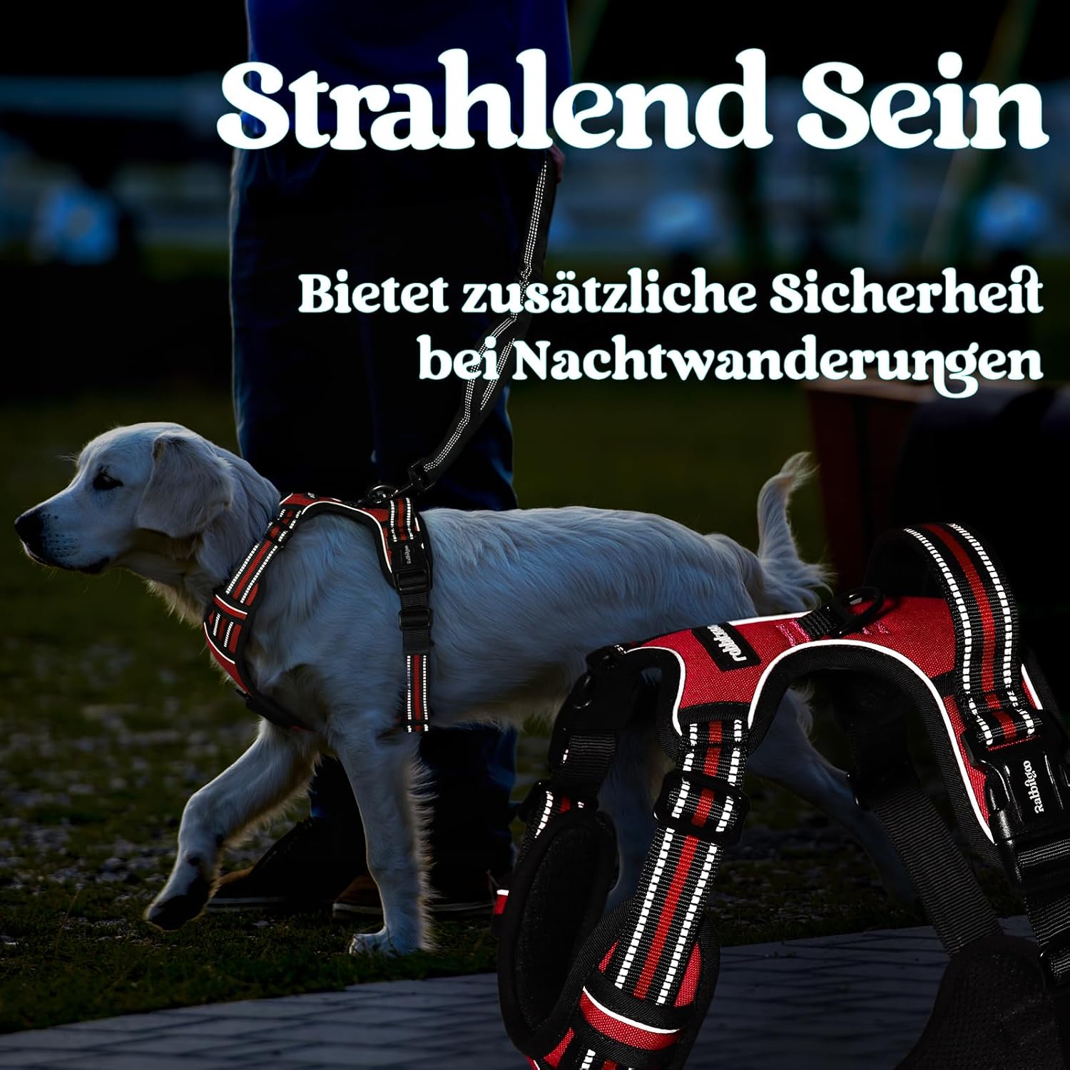 Кучешки нагръдник rabbitgoo за малки кучета, регулируем нагръдник без дърпане и задавяне, нагръдник против дърпане с дръжка, мек подплатен светлоотразителен нагръдник, червен, размер S