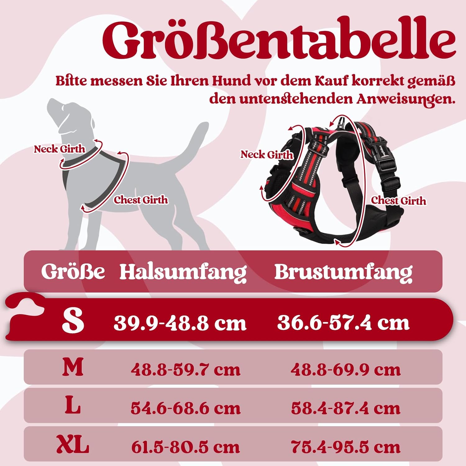 • Лесно регулиране: Четири напълно регулируеми презрамки са подходящи за повечето породи и осигуряват добро прилягане и свобода на движение, особено за кучета в бързи фази на растеж. Моля, вижте таблицата с размери, за да измерите вашия пухкав приятел и да изберете размер преди покупка. Обиколка на врата 54,6–68,6 см, обиколка на гръдния кош 58,4–87,4 см.