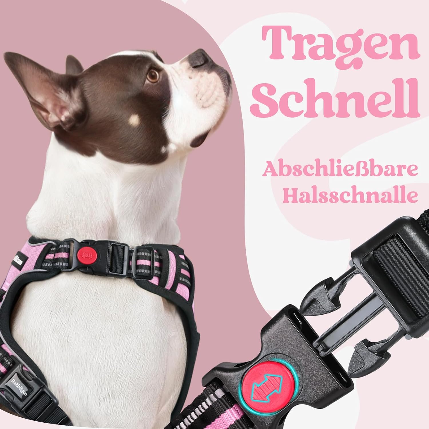 • Лесно поставяне и сваляне: нагръдниците за кучета rabbitgoo имат 3 катарами на врата и тялото за бързо отваряне. Нежната система за закопчаване прави този нагръдник особено подходящ за чувствителни кучета. Не е нужно да го насилвате върху главата на кучето и ушите му няма да бъдат притиснати.