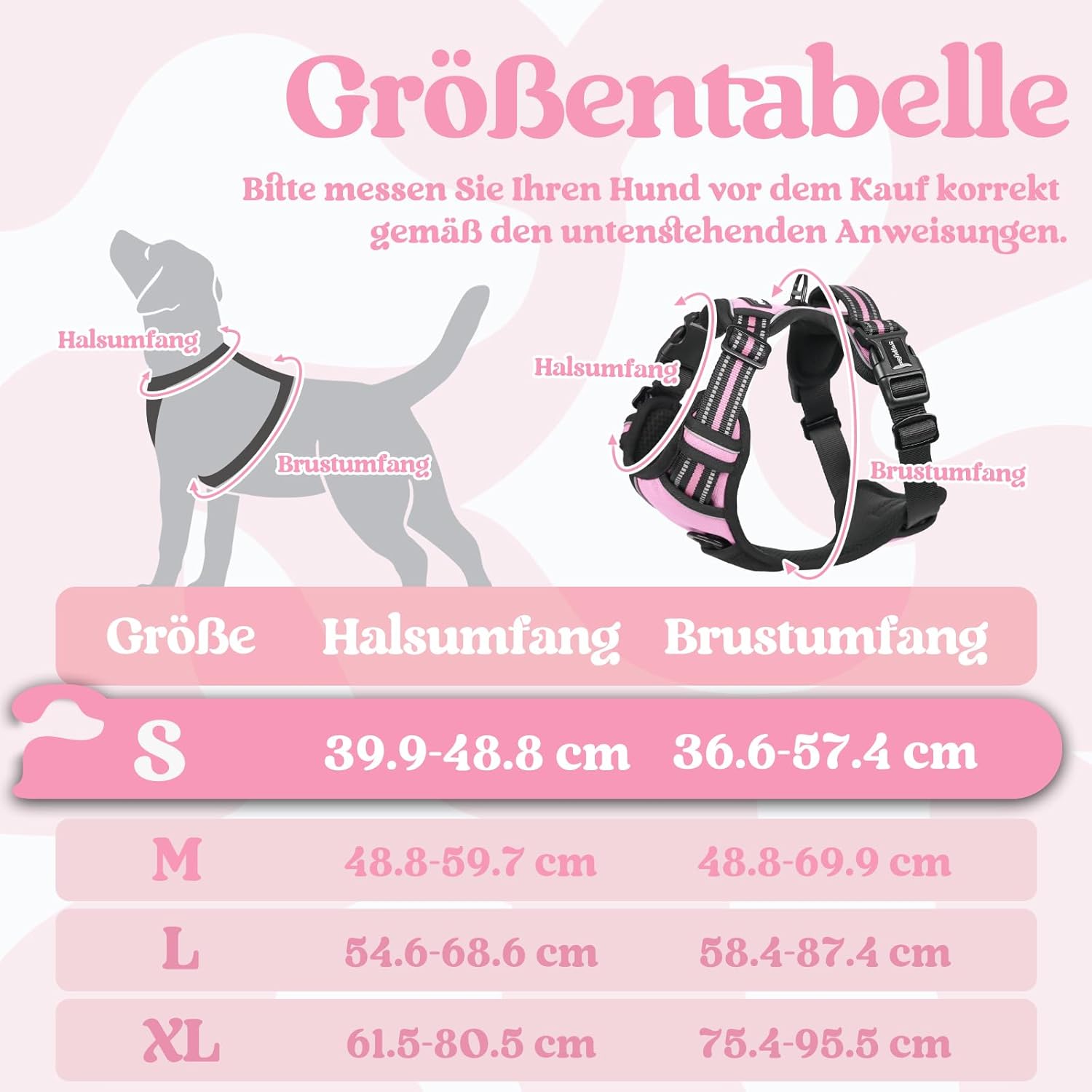 Кучешки нагръдник rabbitgoo за малки кучета, регулируем нагръдник без дърпане и задавяне, нагръдник против дърпане с дръжка, мек подплатен светлоотразителен нагръдник, розов, размер S