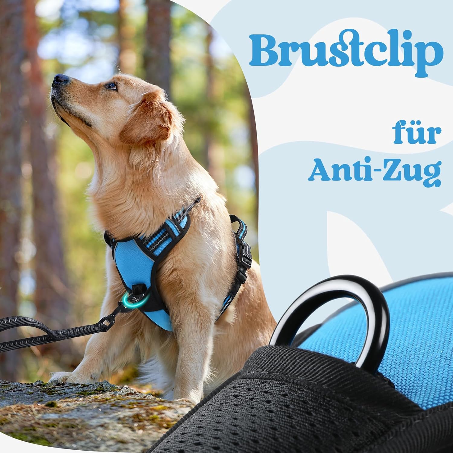 Кучешки нагръдник rabbitgoo за средни кучета, регулируем нагръдник без дърпане и задавяне, нагръдник против дърпане с дръжка, мек подплатен светлоотразителен нагръдник, светлосин, M