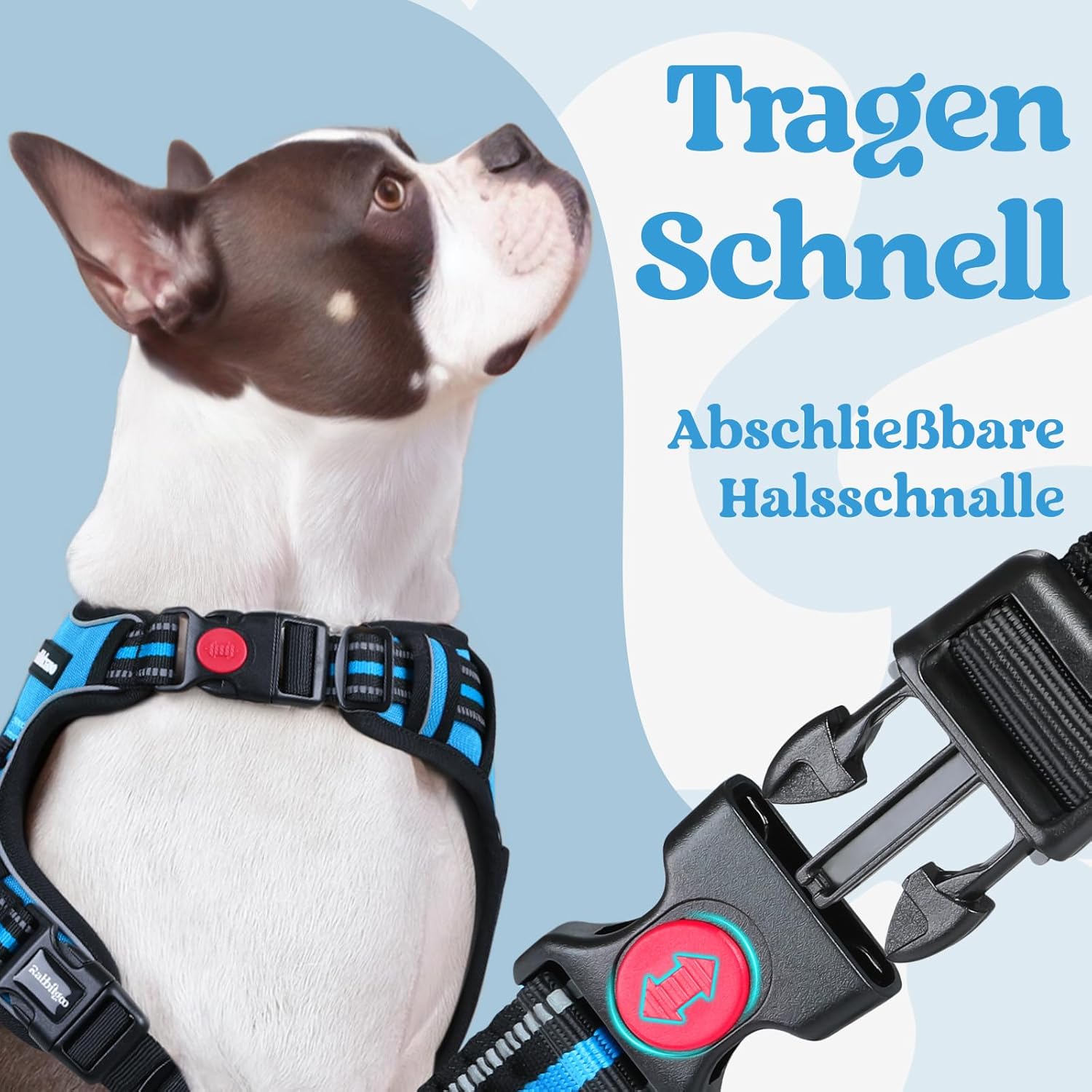 • Лесно поставяне и сваляне: нагръдниците за кучета rabbitgoo имат 3 катарами на врата и тялото за бързо отваряне. Нежната система за закопчаване прави този нагръдник особено подходящ за чувствителни кучета. Не е нужно да го насилвате върху главата на кучето и ушите му няма да бъдат притиснати.