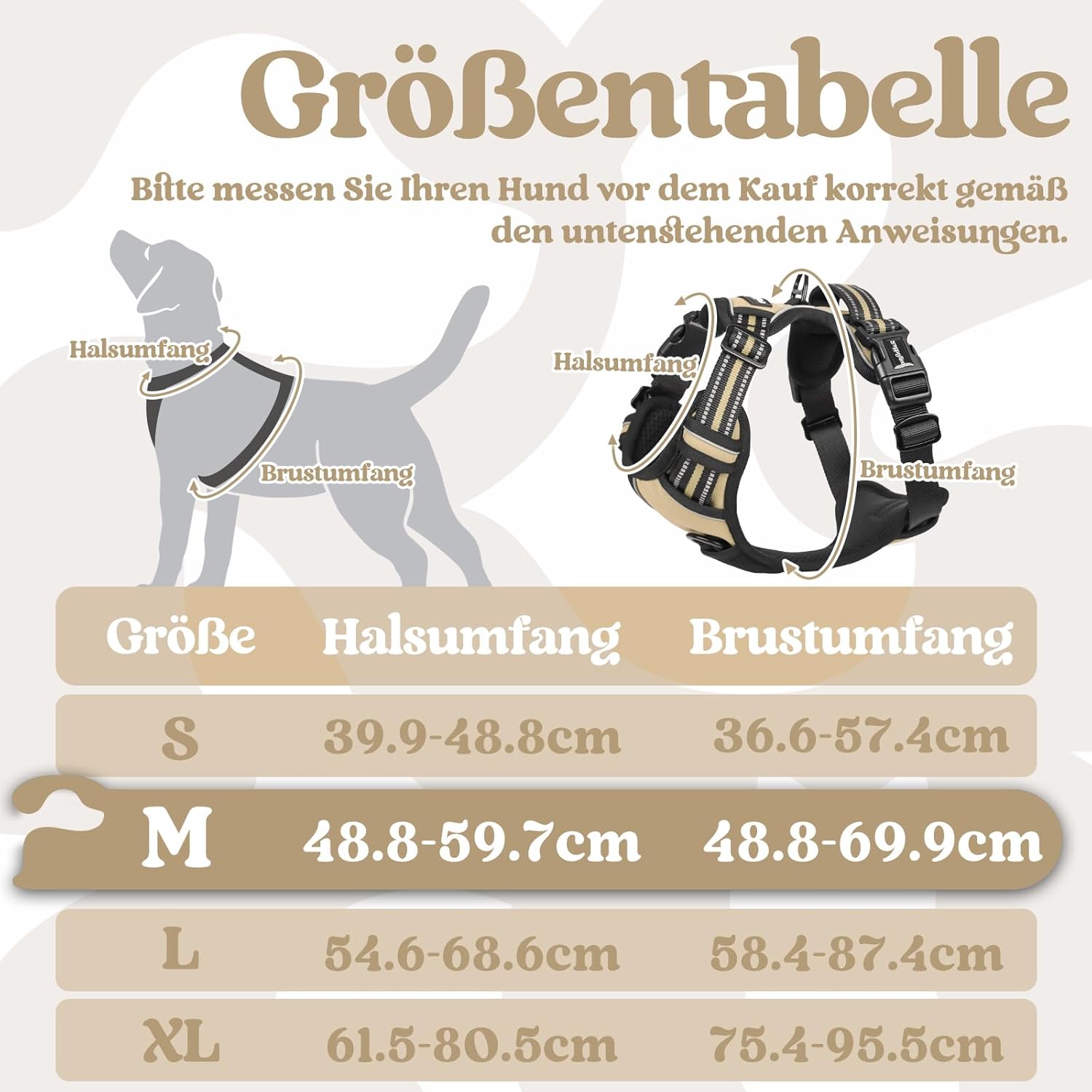 • Лесно регулиране: Четири напълно регулируеми презрамки са подходящи за повечето породи и осигуряват добро прилягане и свобода на движение, особено за кучета в бързи фази на растеж. Моля, вижте таблицата с размери, за да измерите вашия пухкав приятел и да изберете размер преди покупка. Обиколка на врата 54,6–68,6 см, обиколка на гръдния кош 58,4–87,4 см.