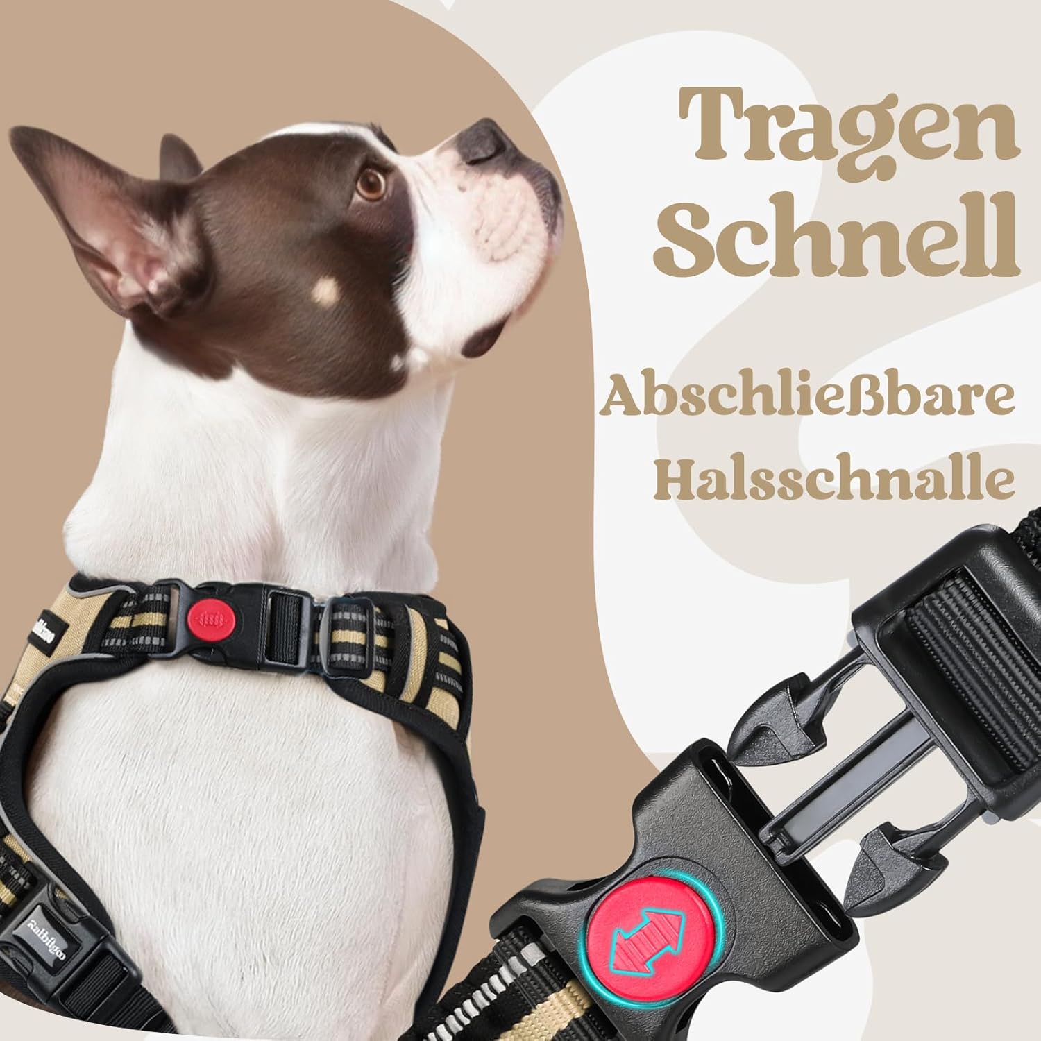 • Лесно поставяне и сваляне: нагръдниците за кучета rabbitgoo имат 3 катарами на врата и тялото за бързо отваряне. Нежната система за закопчаване прави този нагръдник особено подходящ за чувствителни кучета. Не е нужно да го насилвате върху главата на кучето и ушите му няма да бъдат притиснати.