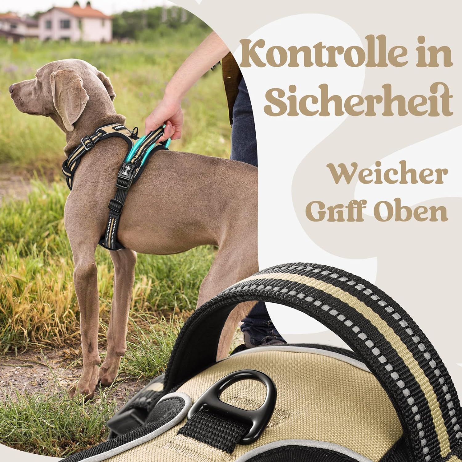 • Перфектен контрол: Нашият нагръдник за кучета против дърпане разпределя равномерно силата на дърпане и има свойства против задавяне. Нагръдникът има два цинкови пръстена на гърдите и гърба и е подходящ за ежедневни разходки, джогинг и туризъм. Ако кучето ви е ядосано или се нуждае от помощ, можете да го контролирате с дръжката отгоре.