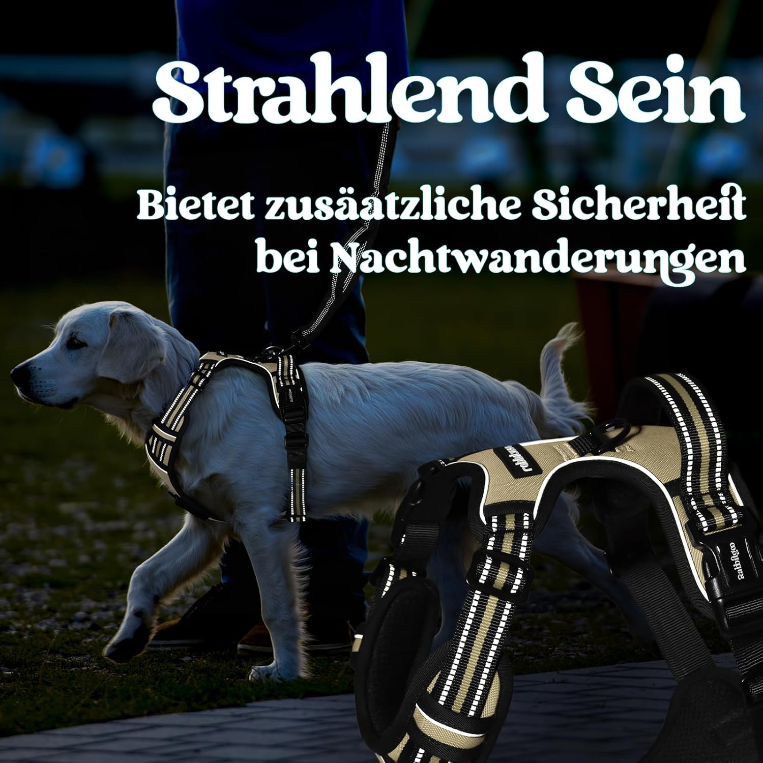• Ултра-сигурен дизайн: Нагръдникът за кучета е изработен от износоустойчива оксфордска материя с подсилени шевове. Заключващата се катарама на врата осигурява сигурно прилягане и предотвратява случайно разхлабване. Нагръдникът е с големи светлоотразителни ивици, за да увеличи видимостта и да предпази кучето ви по време на нощни разходки.