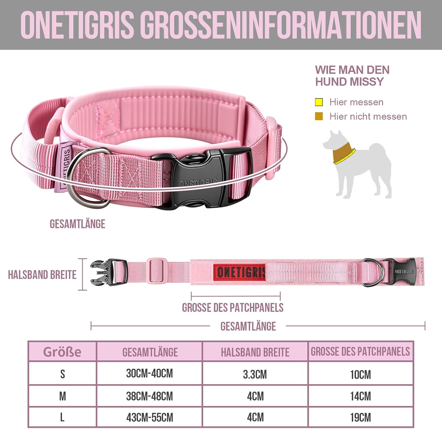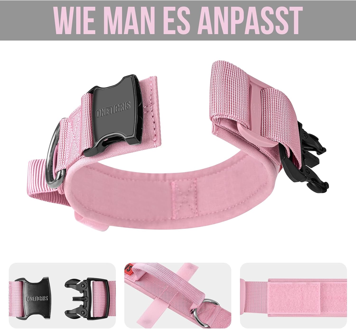 Кучешки нашийник OneTigris с метална катарама за кучета, розов, размер S