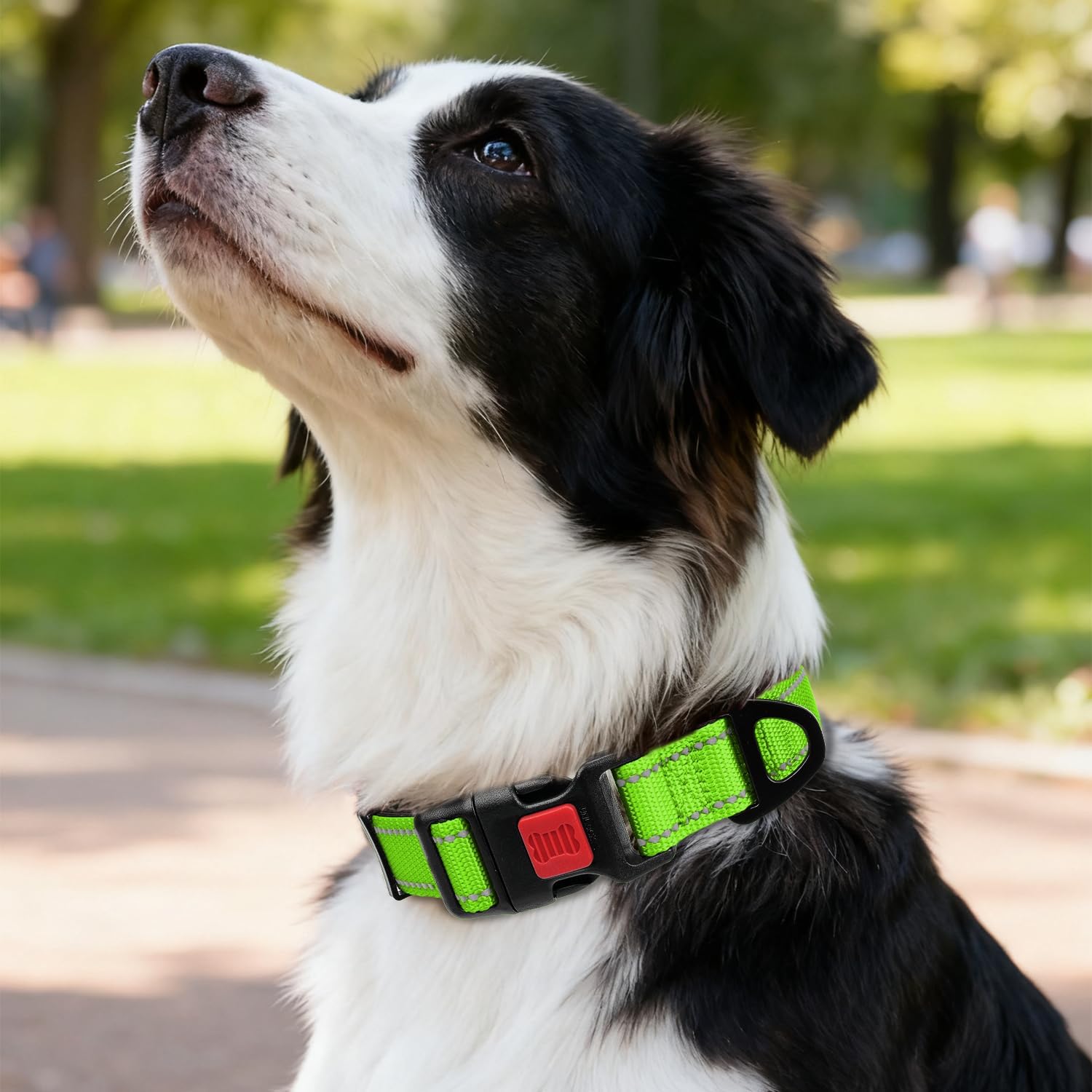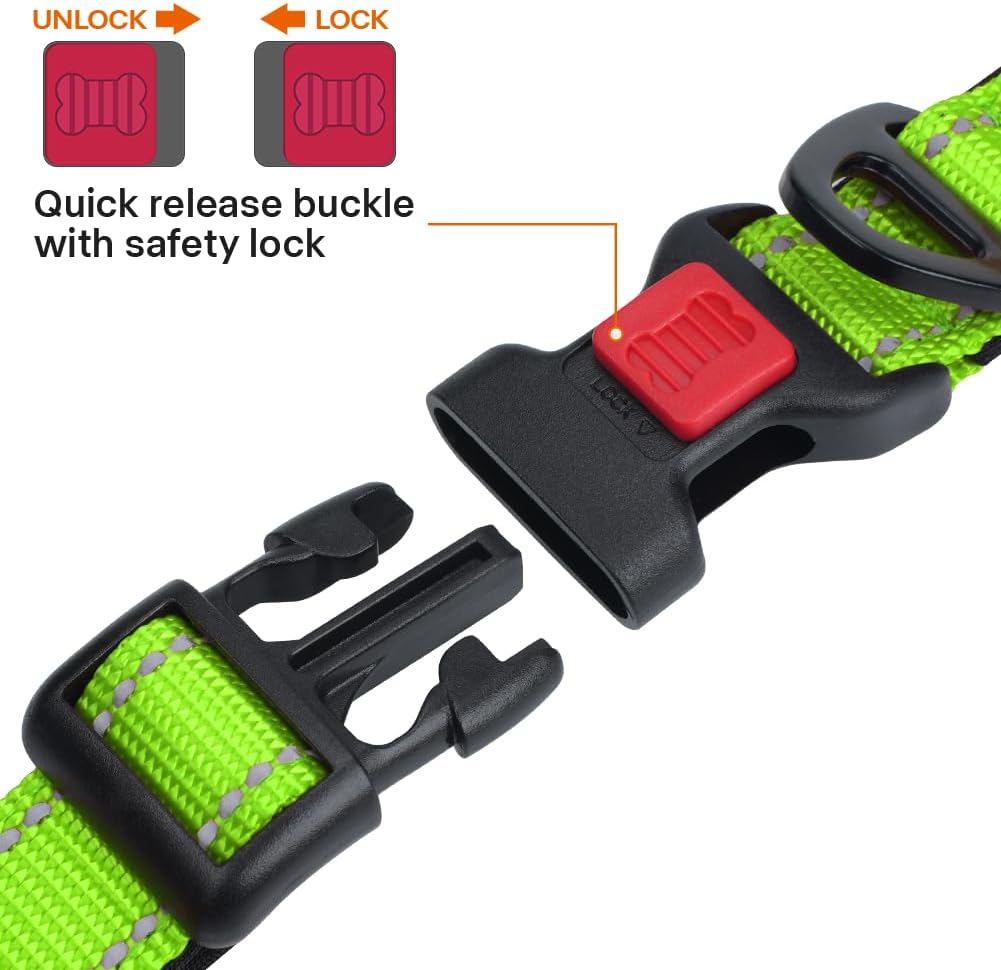 Кучешки нашийник Taglory, мек, подплатен неопренов и найлонов нашийник за средни кучета, регулируем и отразяващ, за обучение, зелен