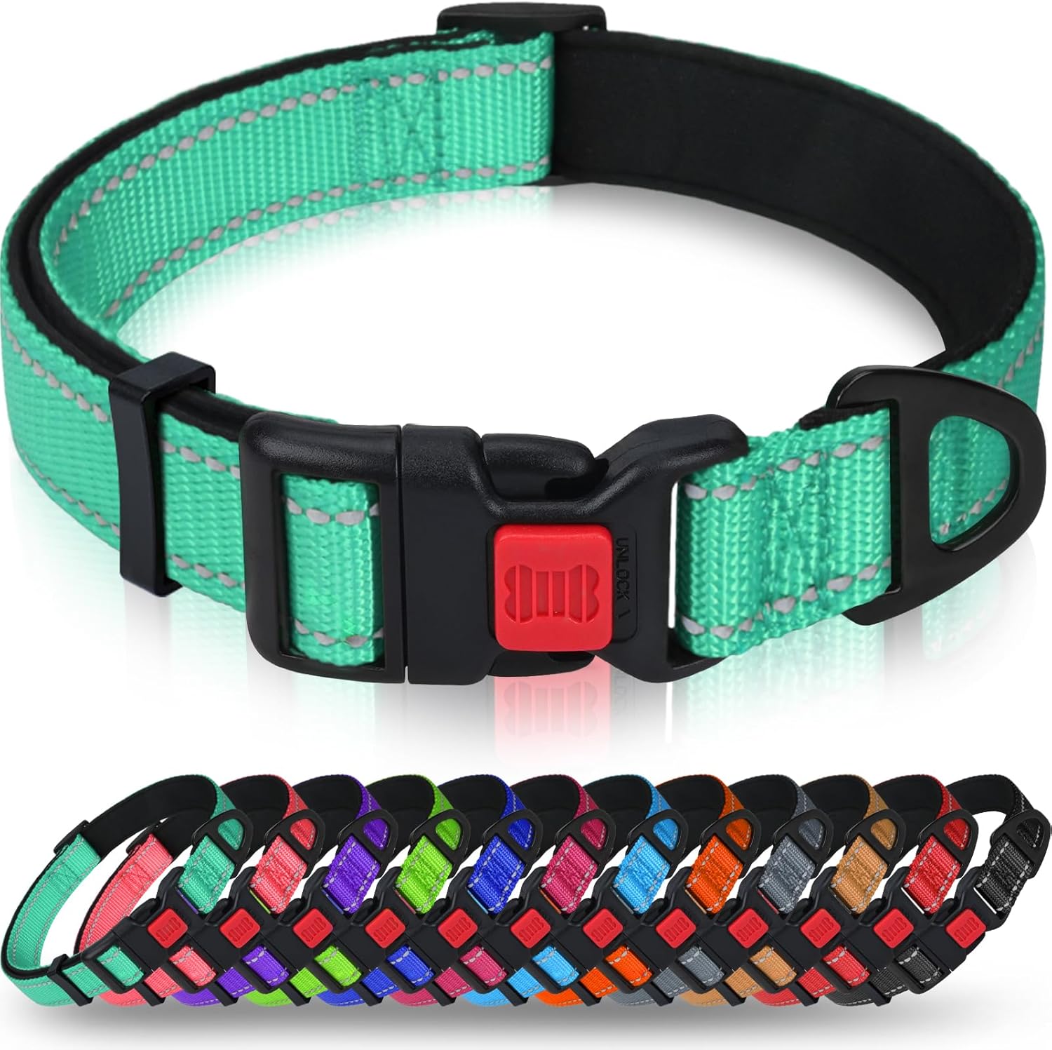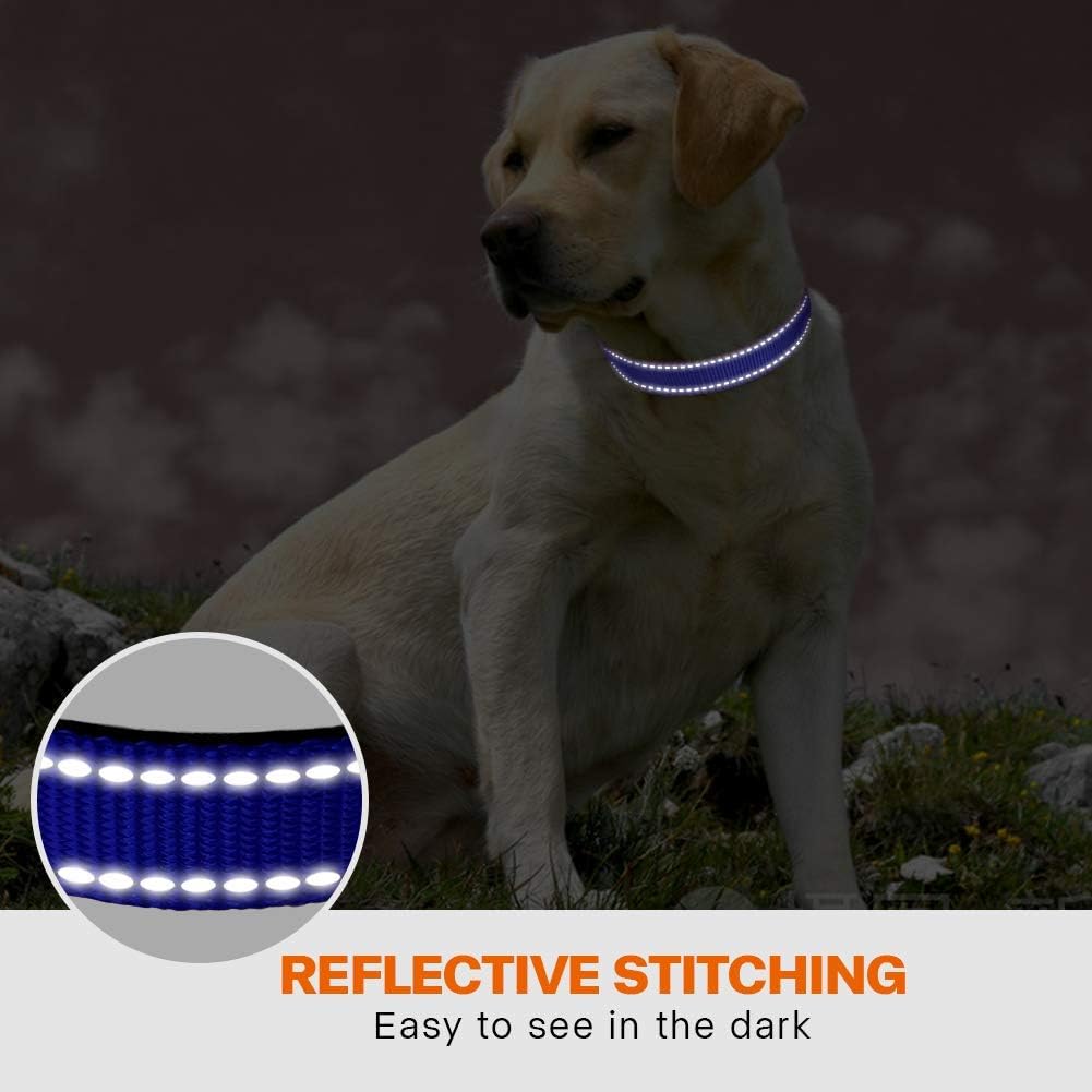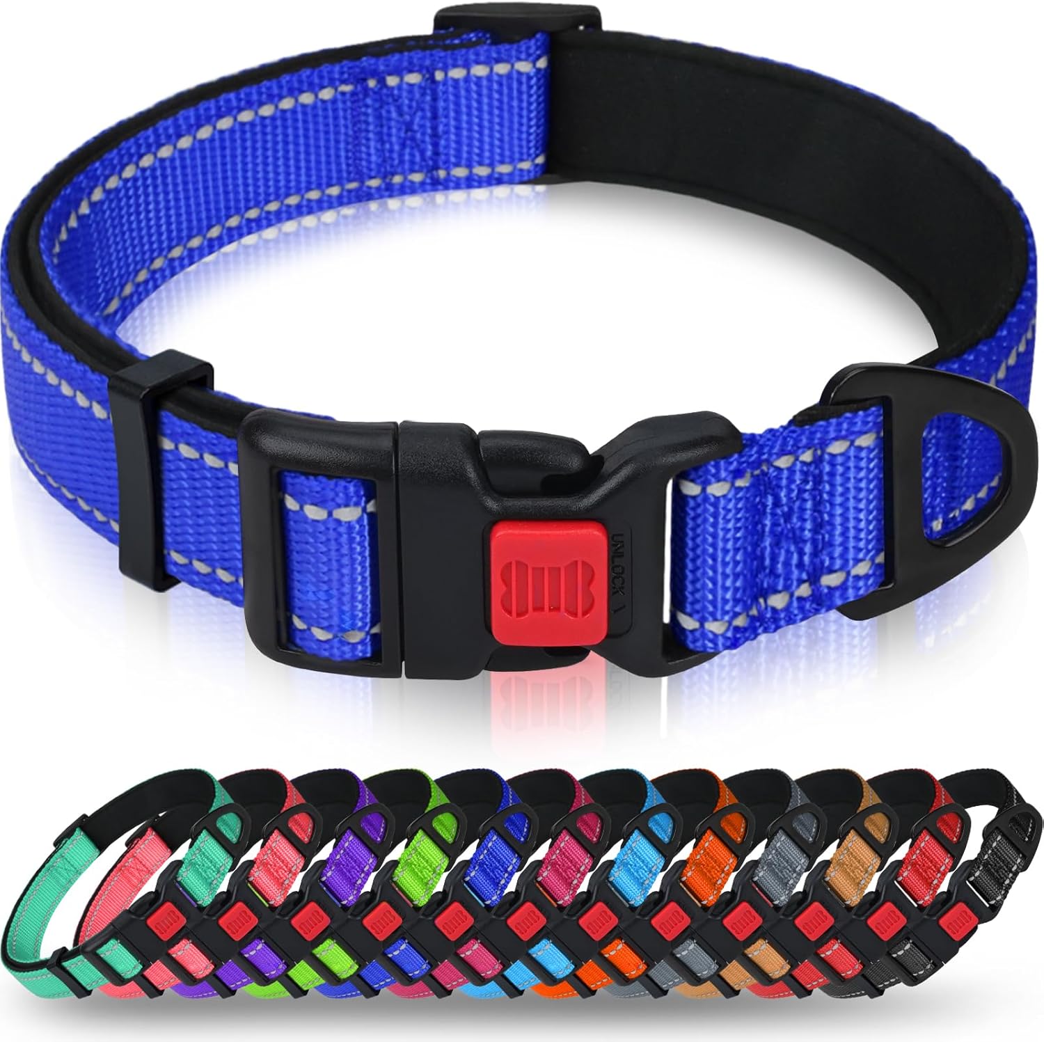 Кучешки нашийник Taglory, мек, подплатен, неопренов, найлонов, за малки кучета, регулируем и отразяващ, за обучение, тъмносин