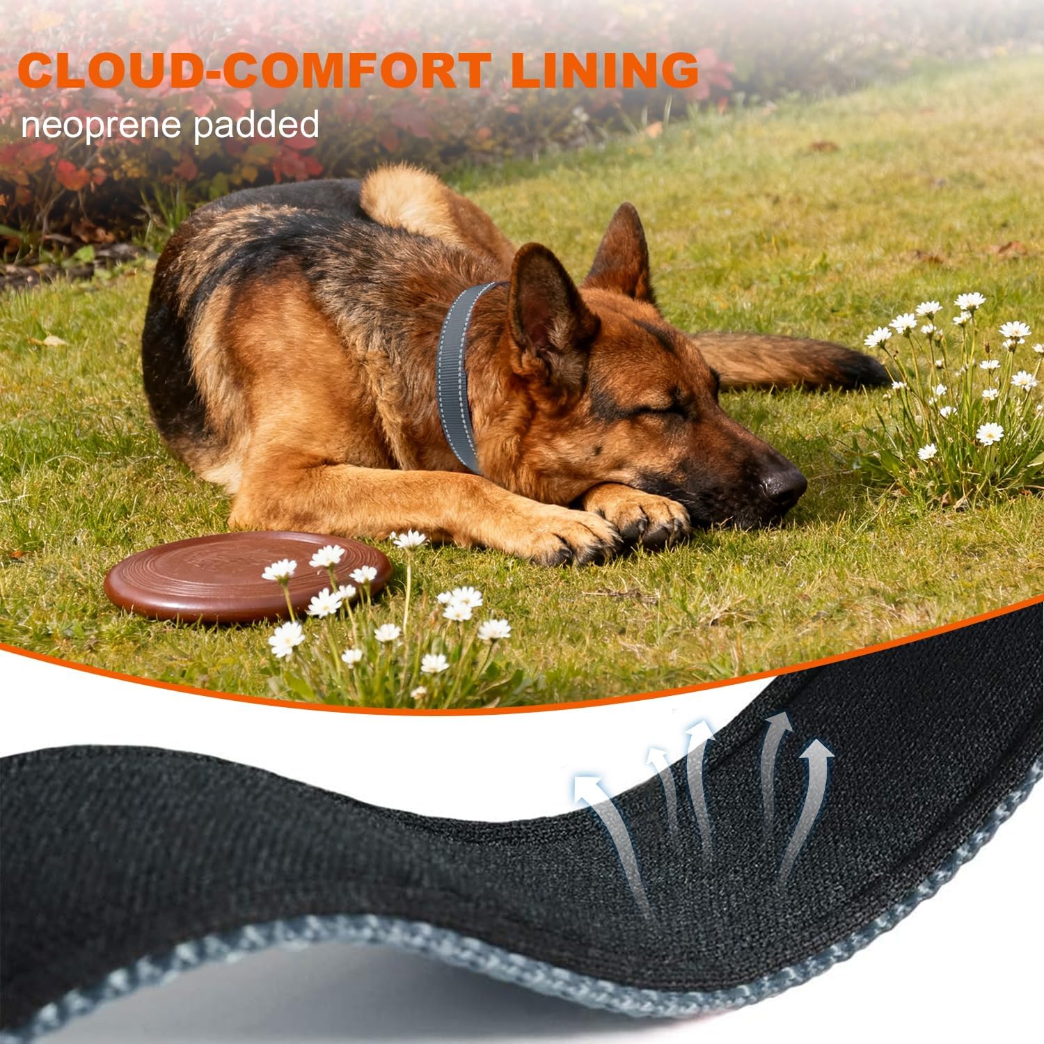 • Мека неопренова подплата: Омекотяващият ефект на тази ексклузивна функция предлага на кучетата максимален комфорт по време на дейности. Няма остри ръбове или шевове, които биха могли да се разкъсат. Здравите шевове осигуряват издръжливост.